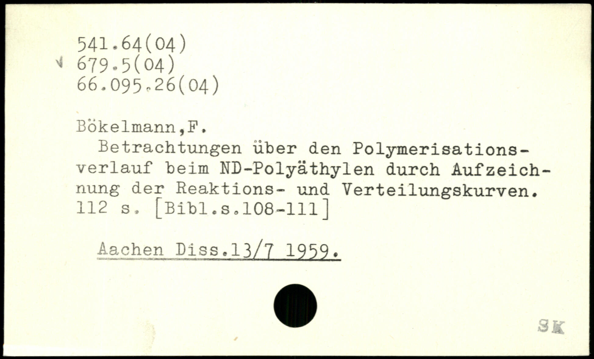 Betrachtungen über den Polymerisationsverlauf heim ND-Polyäthylen durch Aufzeichnung der Reaktions- und Verteilungskurven.