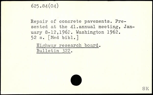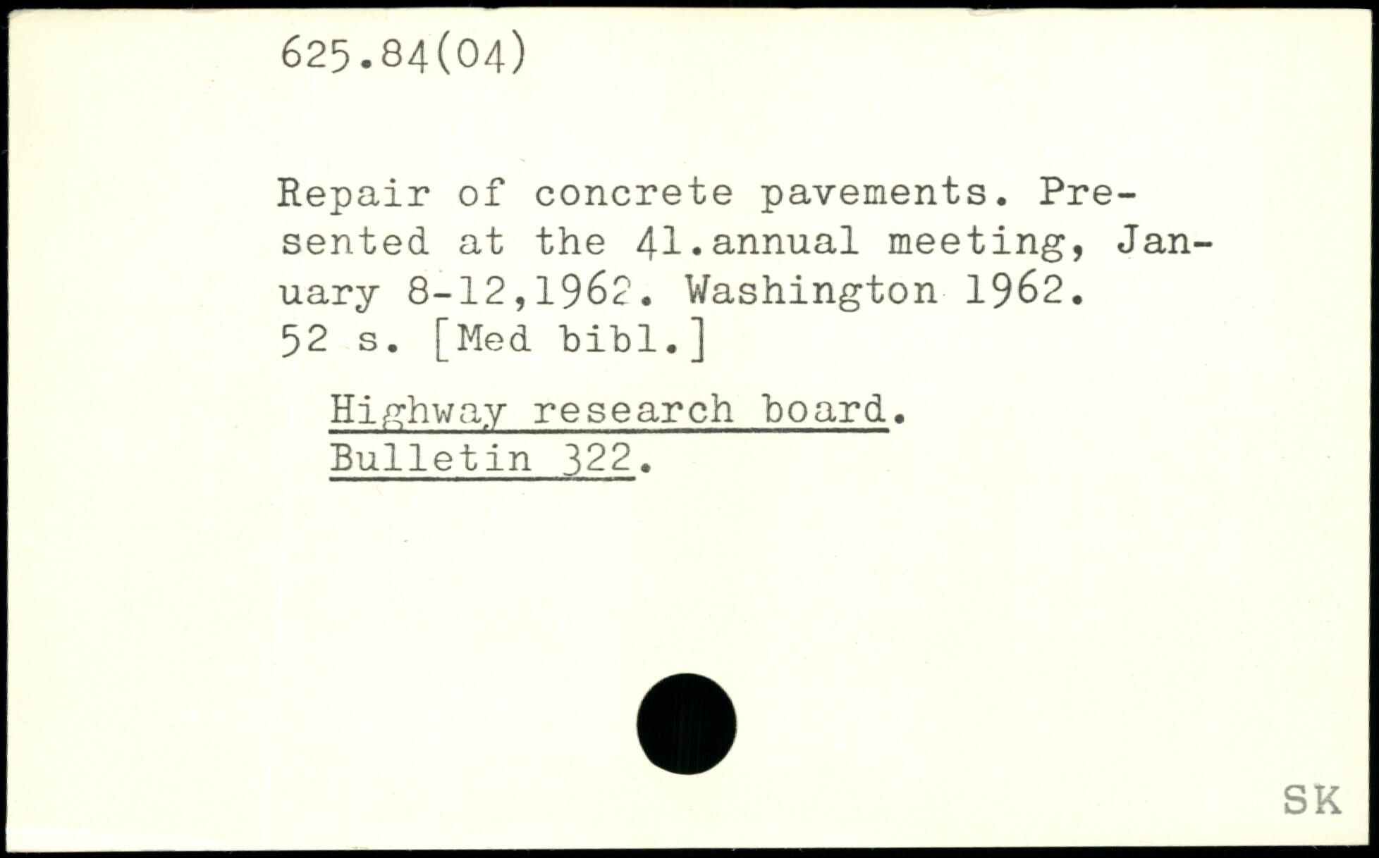 Repair of concrete pavements. Presented at the 41,annual meeting, January 8-12,1962.