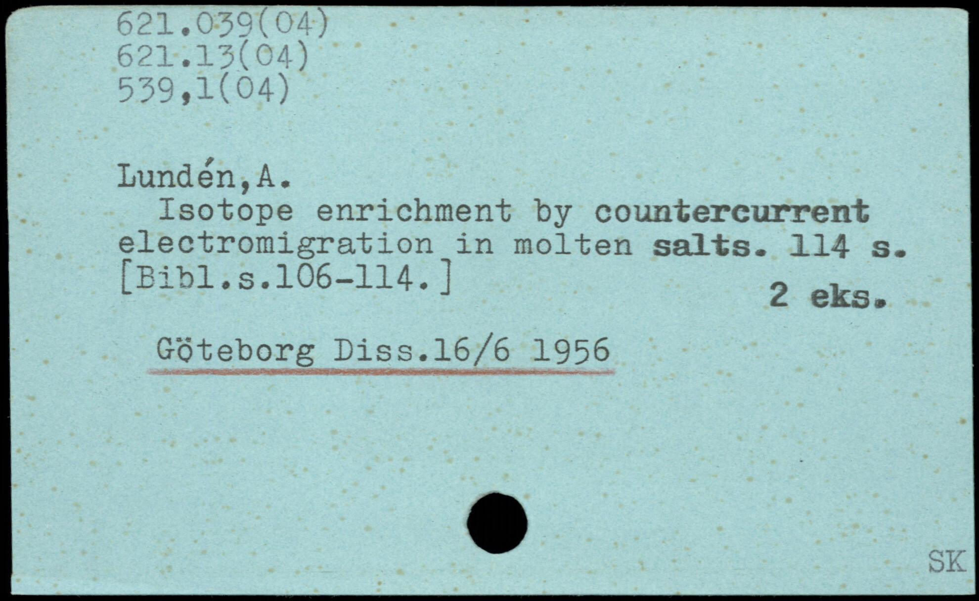 Isotope enrichment by countercurrent electromigration in molten salts.