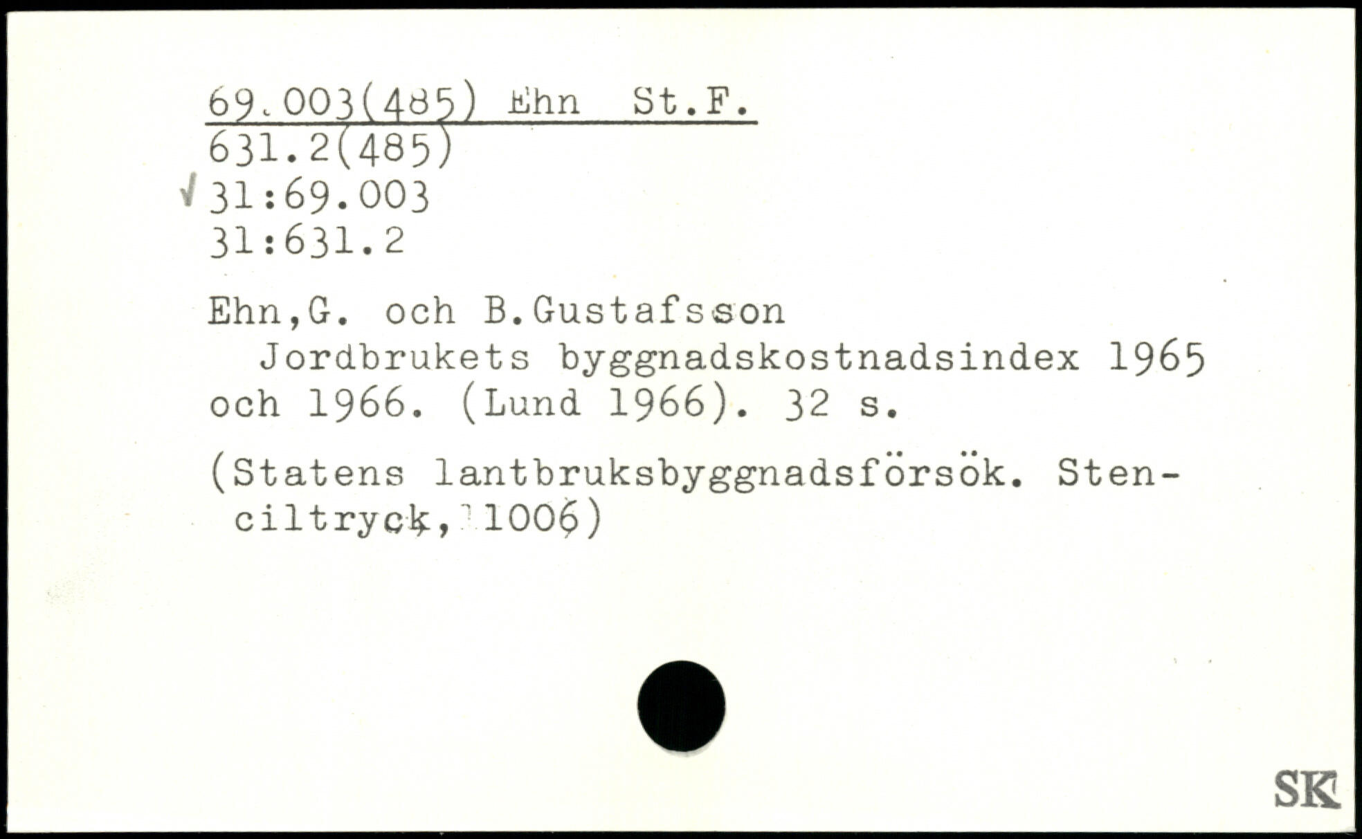 Jordbrukets byggnadskostnadsindex 1965 och 1966. (Lund 1966).