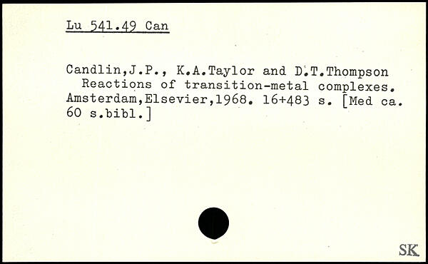 Sted: Reactions of transition-metal complexes, Amsterdam