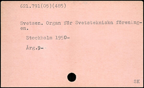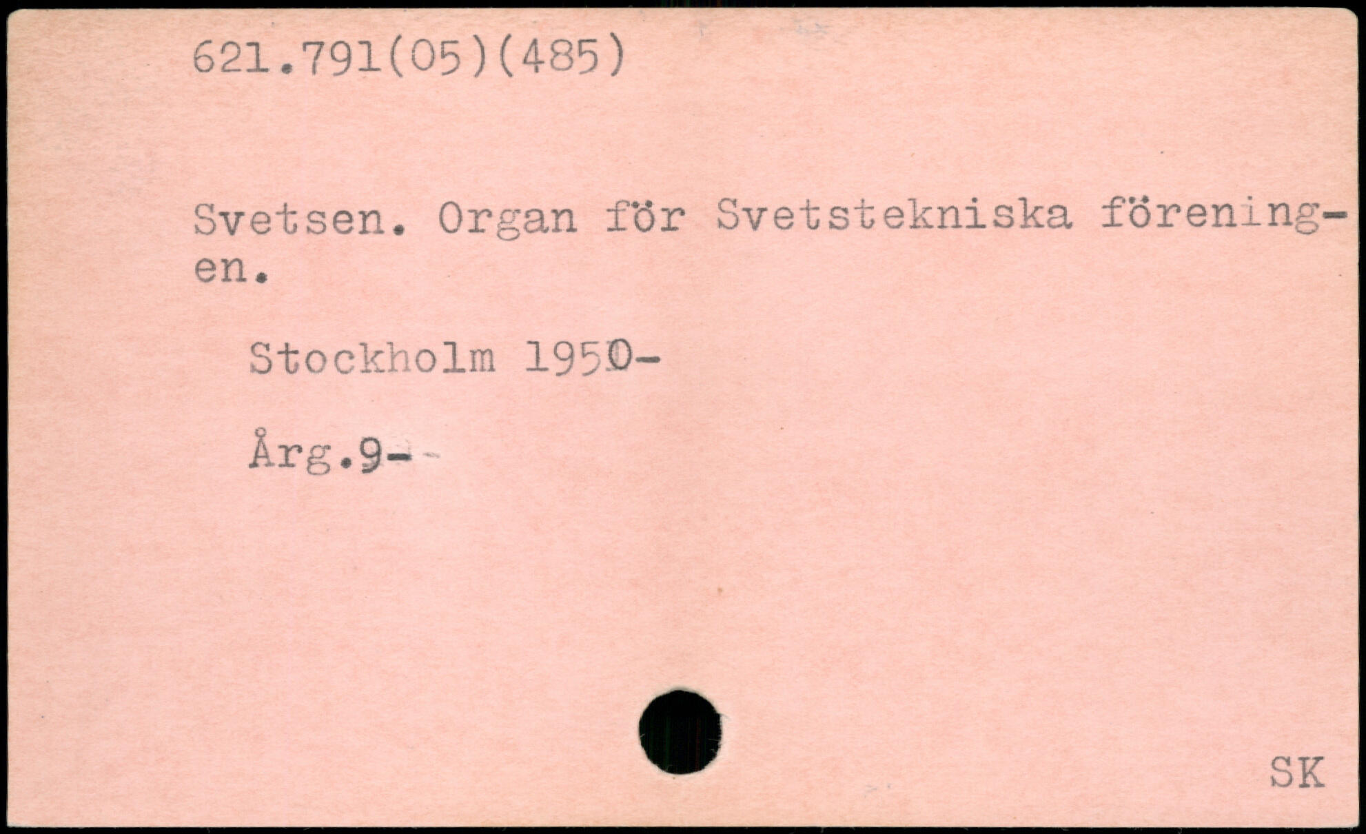 Svetsen. Organ för Svetstekniska förening-en. Stockholm 195©-Årg.9--