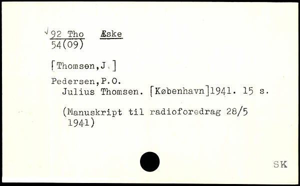 Julius Thomsen. [København]1941.