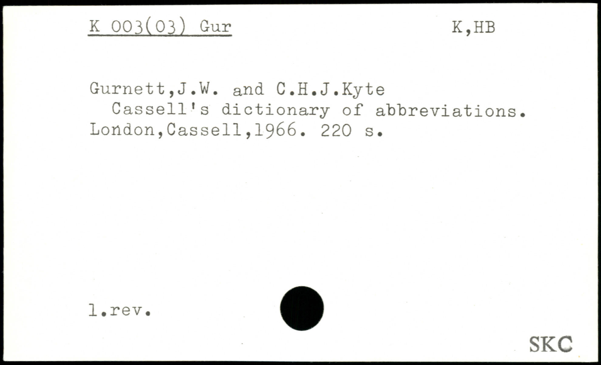 Cassell's dictionary of abbreviations.