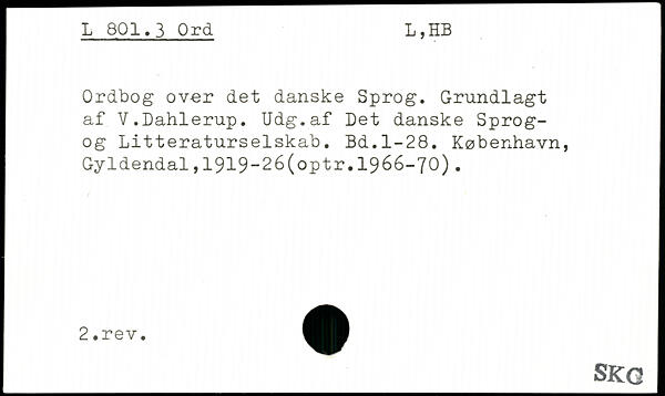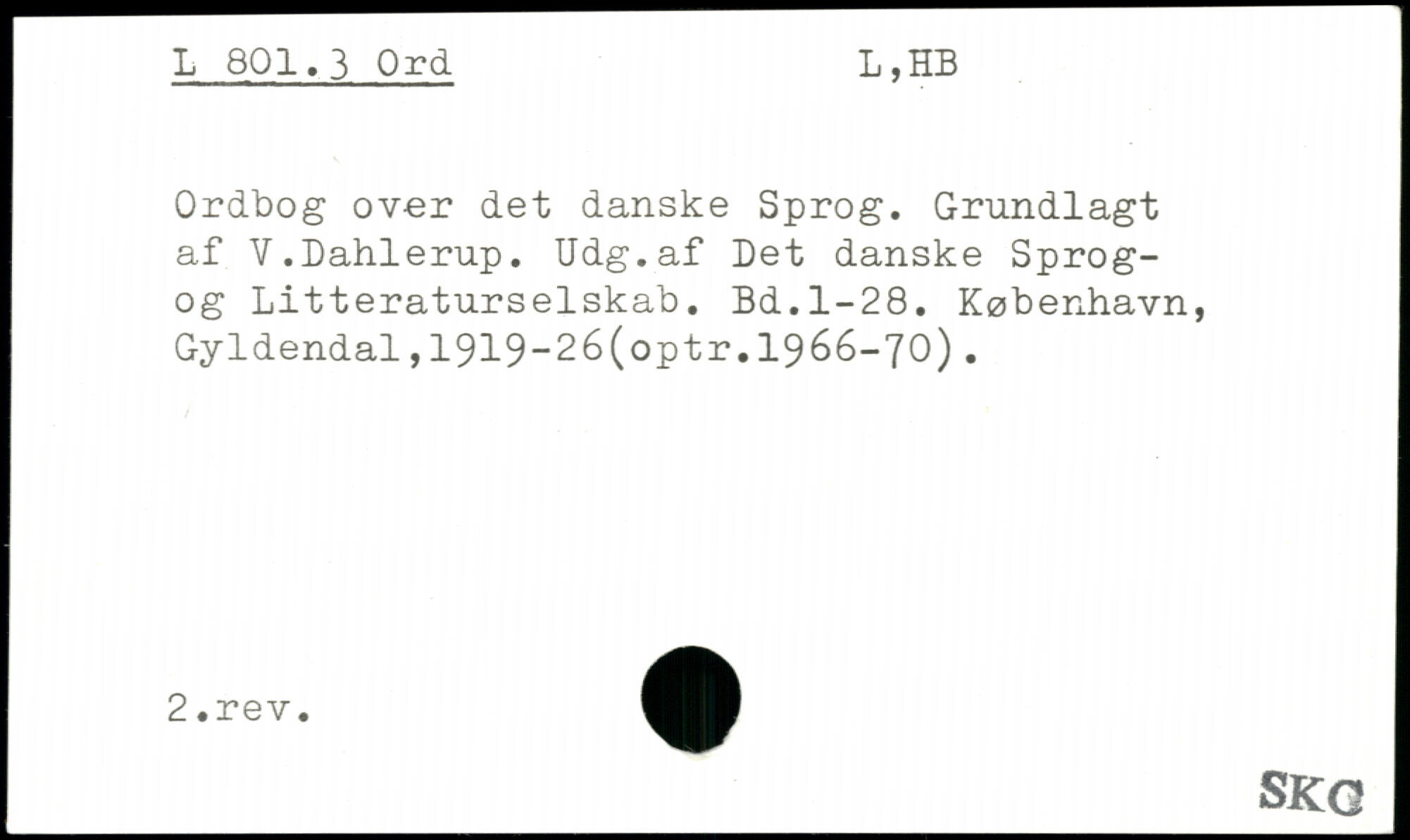Ordbog over det danske Sprog. Grundlagt af V.Dahlerup. Udg.af Det danske Sprog-og Litteraturselskab.