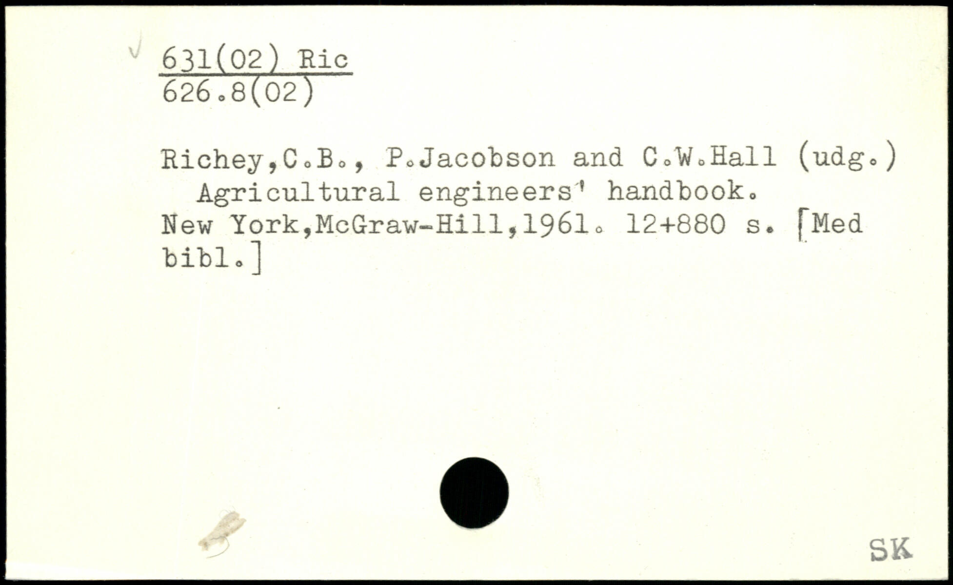 Richey,C0B0, PoJacobson and CoW,Hall (udgo) Agricultural engineers'. handbook