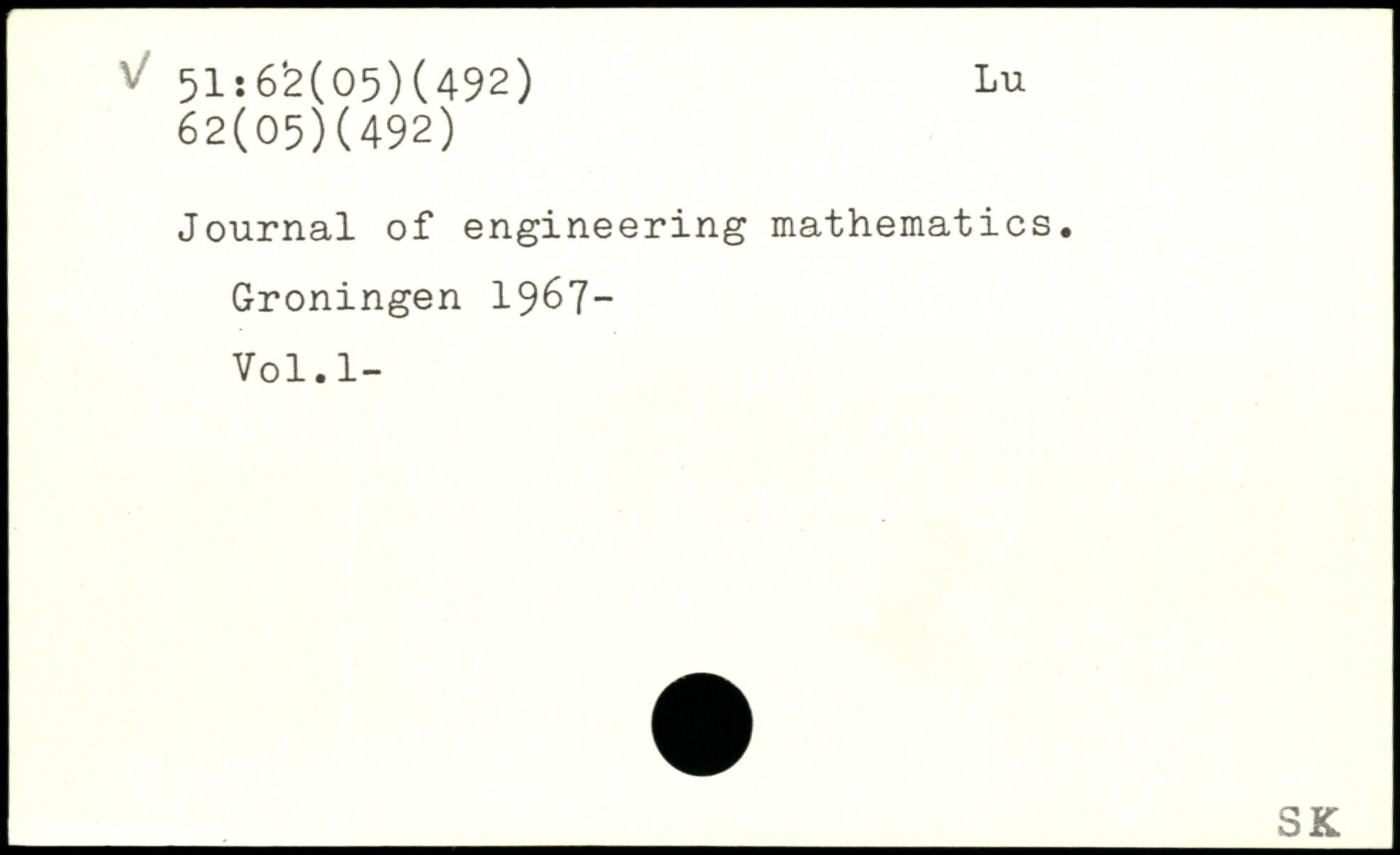 Journal of engineering mathematics. Groningen 1967-Vol.l-