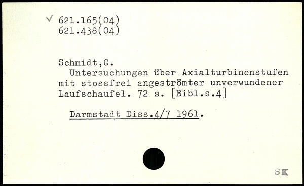 Untersuchungen über Axialturbinenstufen mit stossfrei angeströmter unverwundener Laufschaufei.