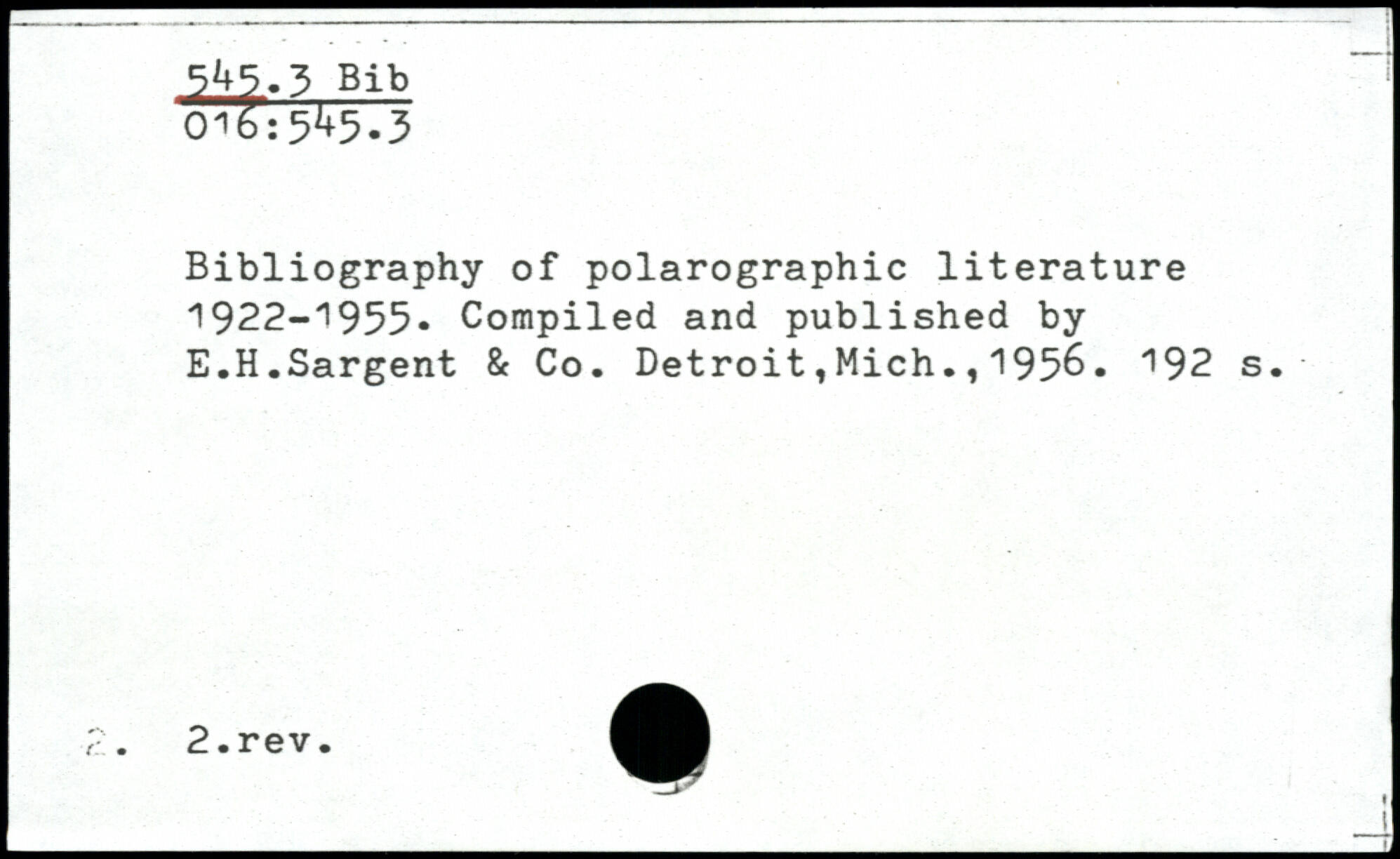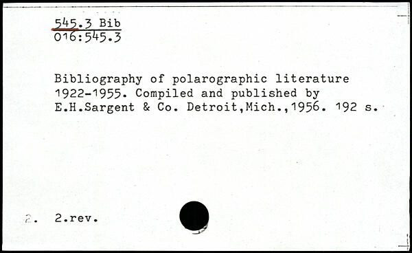 Bibliography of polarographic literature 1922-1955- Compiled and published by E.H.Sargent & Co. Detroit,Mich.,195&.