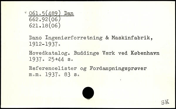 Dano Ingeniørforretning & Maskinfabrik, 1912-1937, Hovedkatalog. Buddinge Værk ved