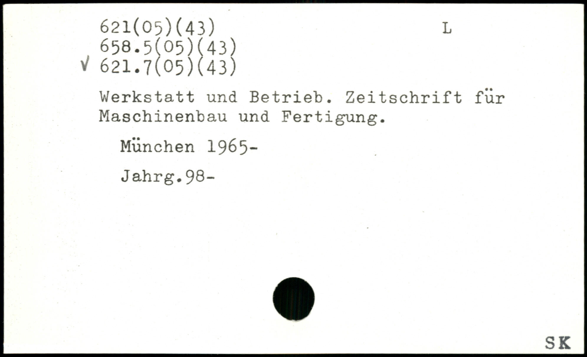 Werkstatt und Betrieb. Zeitschrift für Maschinenbau und Fertigung. München 19^5“ Jahrg.98-