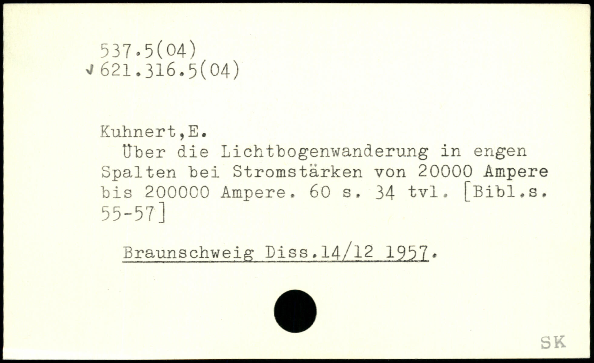 Uher die Lichtbogenwanderung in engen Spalten bei Stromstärken von 20000 Ampere bis 200000 Ampere.