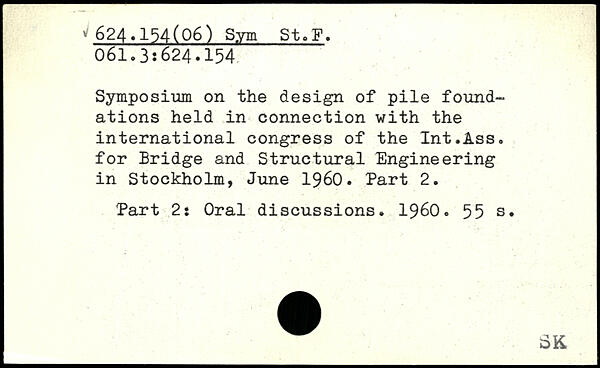 Symposium on the design of pile foundations held in connection with the international congress of the Int.Ass. for Bridge and Structural Engineering in Stockholm, June 1960. Part 2. Part 2: Oral discussions. 1960.