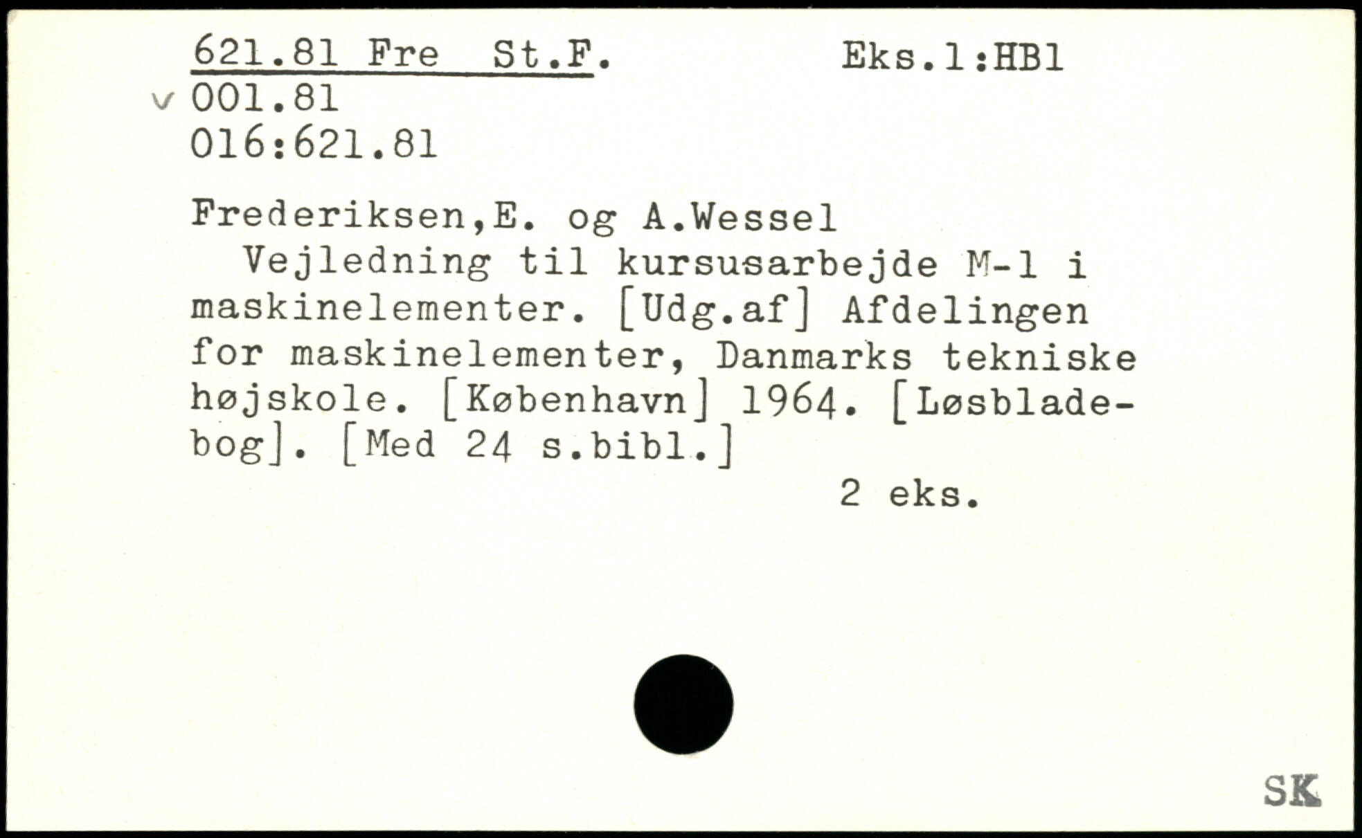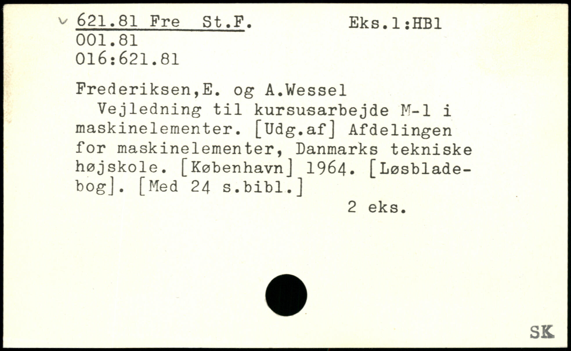 Vejledning til kursusarbejde M-l i maskinelementer. [Udg.af] Afdelingen for maskinelementer, Danmarks tekniske højskole.