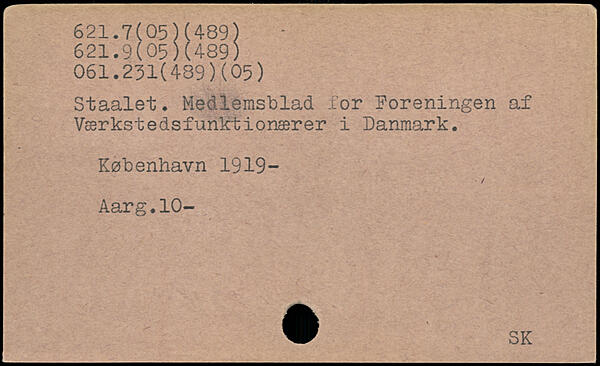 Staalet. Medlemsblad i’or Poreningen af Værkstedsfunktionærer i Danmark.