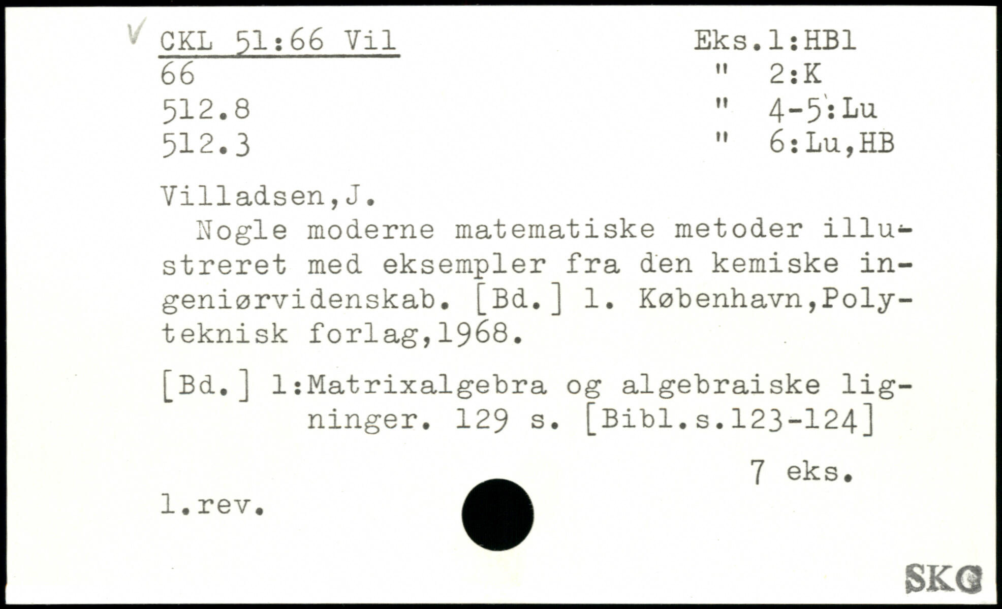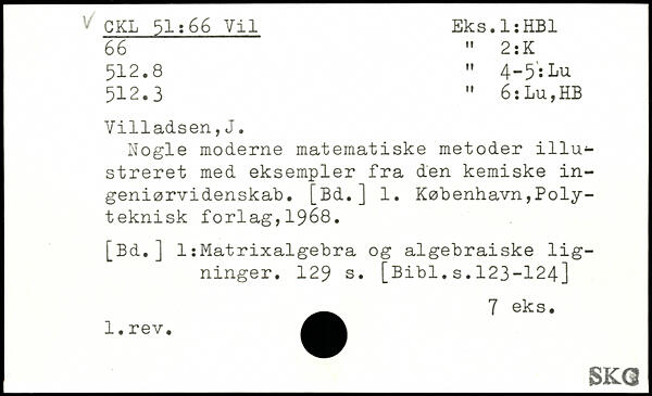 Nogle moderne matematiske metoder illustreret med eksempler fra den kemiske ingeniørvidenskab. [Bd.] 1.