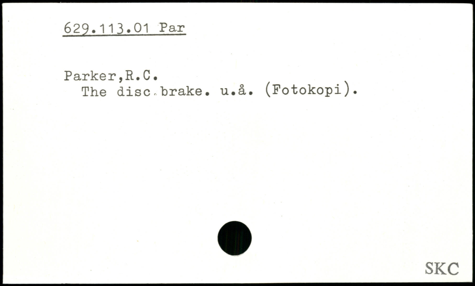The disc brake. u.å. (Fotokopi).