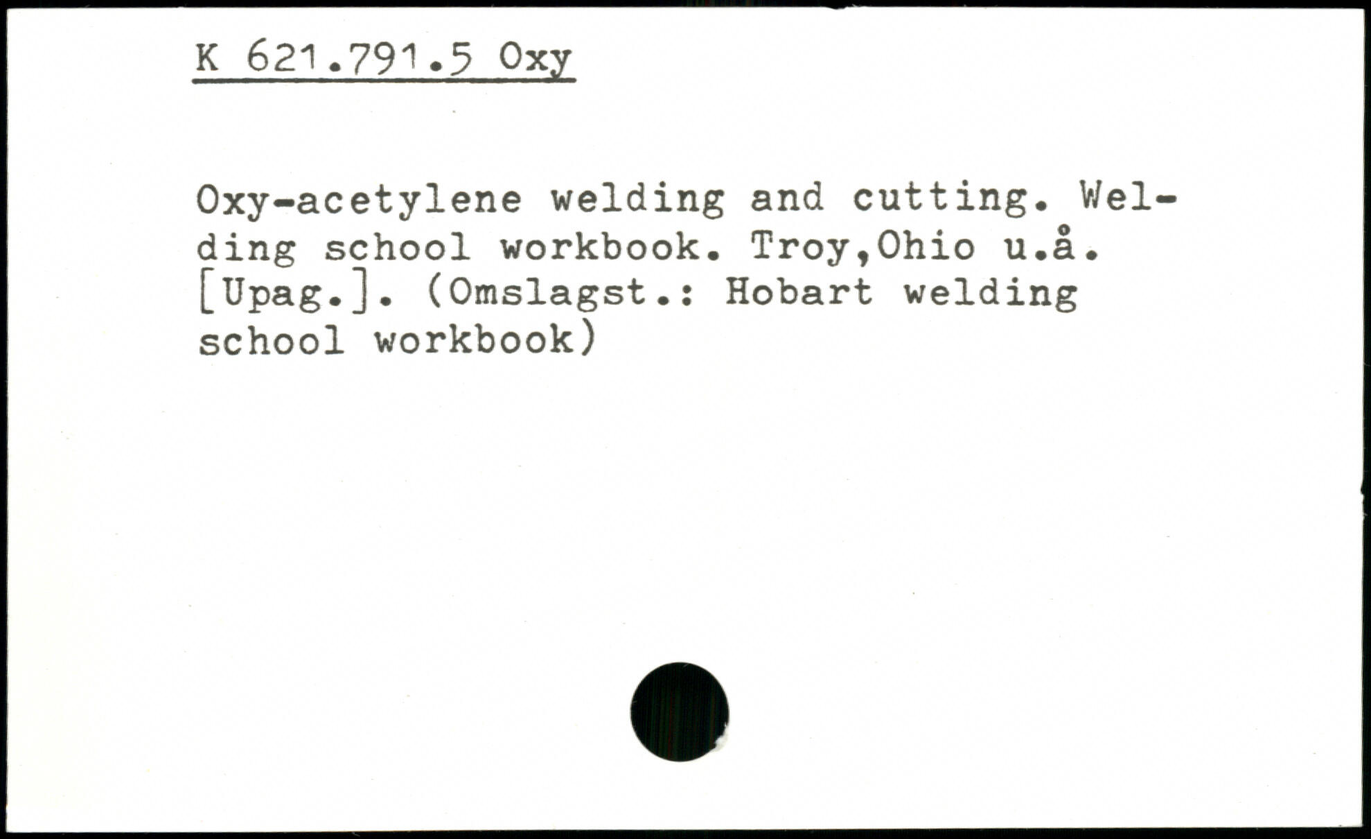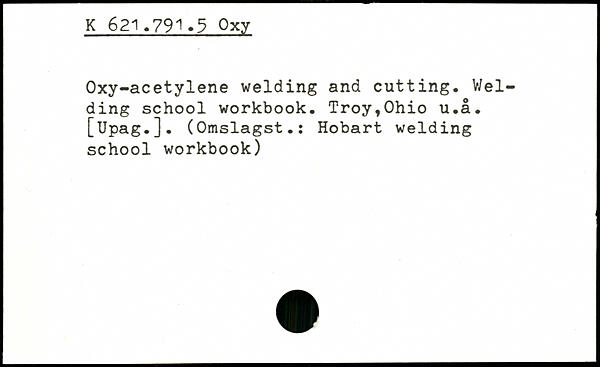 Oxy-acetylene welding and cutting. Welding school workbook. Troy,Ohio u.a. [Upag.]. (Omslagst.: Hobart welding school workbook)