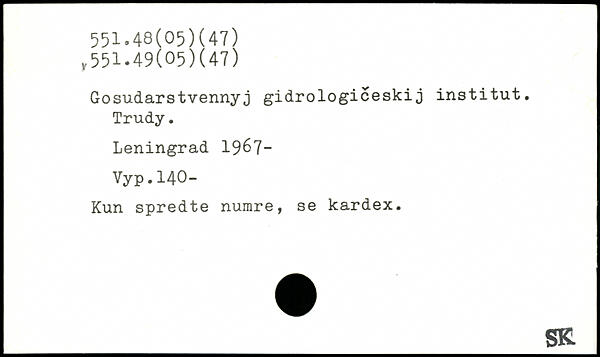 Gosudarstvennyj gidrologiceskij institut. Trudy. Leningrad 196?-Vyp.140- Kun spredte numre, se kardex.
