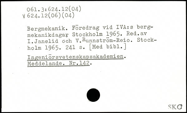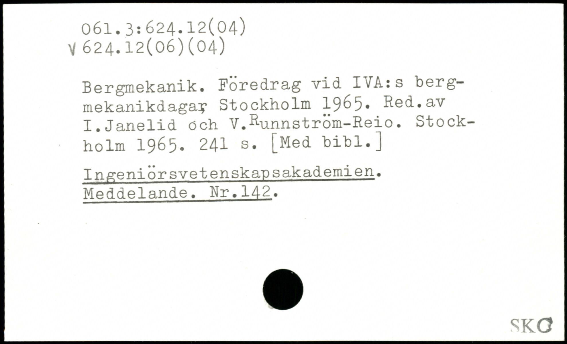 Bergmekanik. Föredrag vid IVA:s berg-mekanikdaga^. Stockholm 19&5. Red. av I.Janelid öch V.Runnström-Reio.
