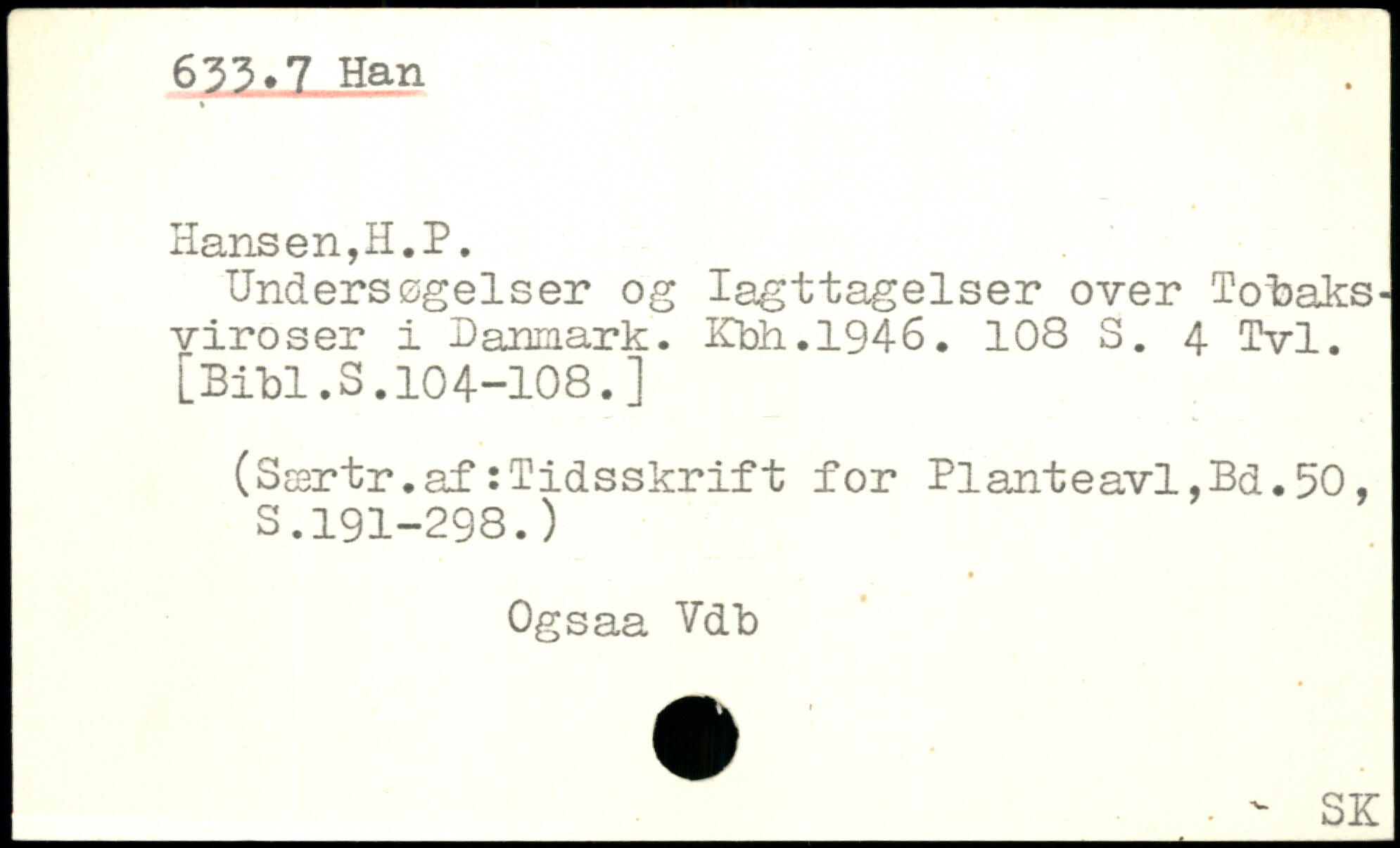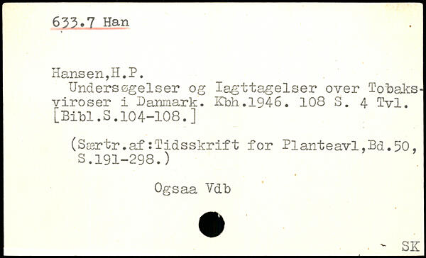 Undersøgelser og Iagttagelser over Tobaks-viroser i Danmark. Kbh.1946.