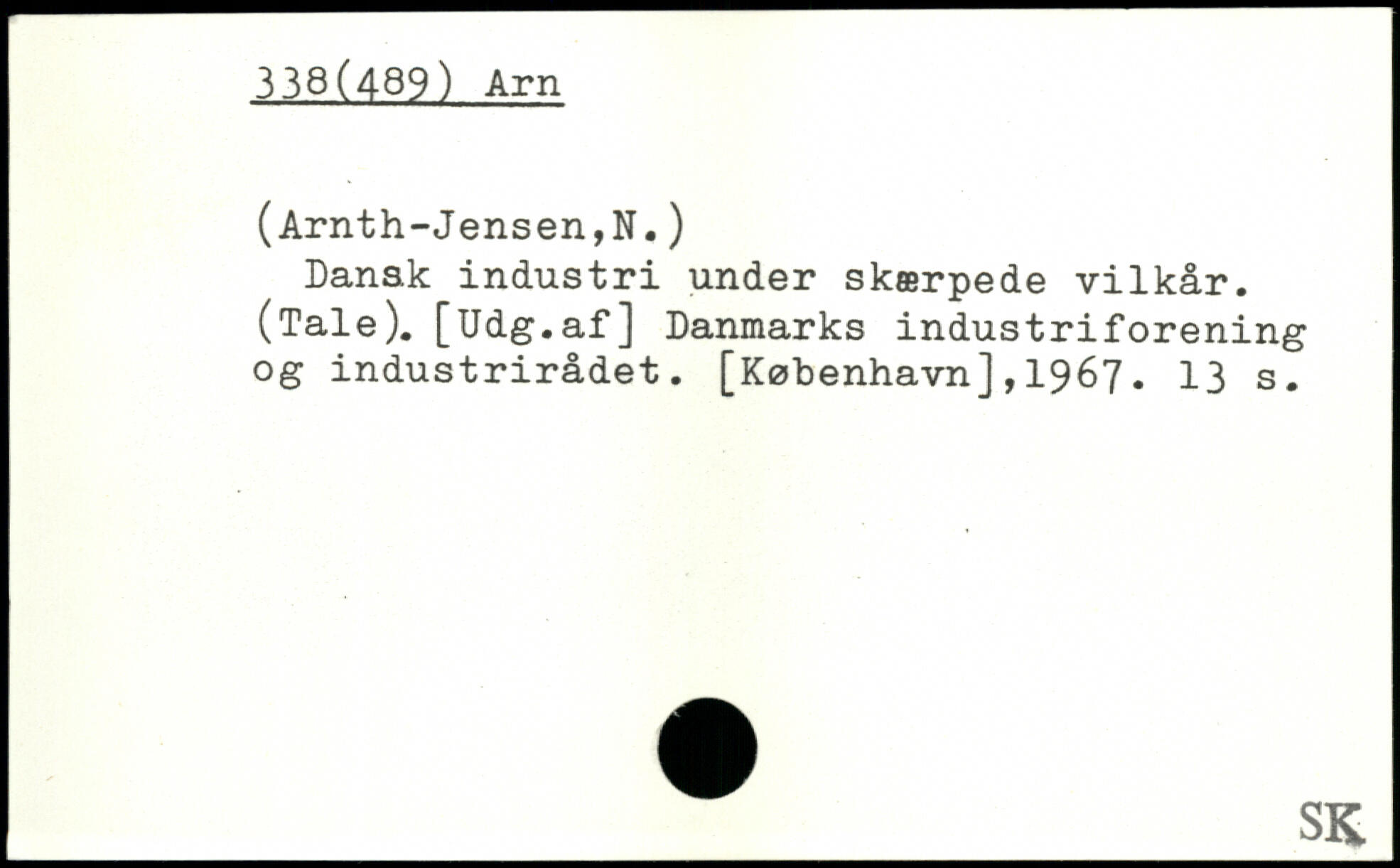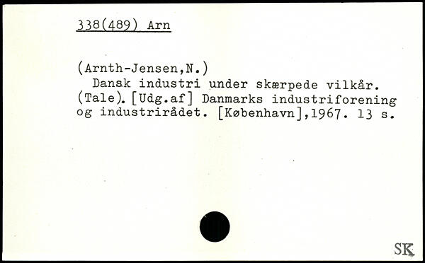 Danak industri under skærpede vilkår. (Tale). [Udg.af] Danmarks industriforening og industrirådet. [København],1967.