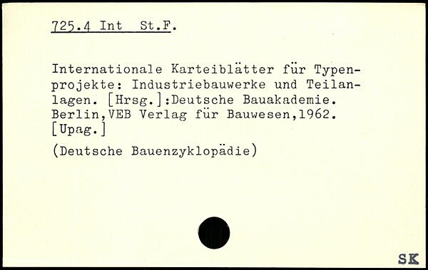 Internationale Karteiblatter für Typenprojekte: Industriebauwerke und Teilanlagen. [Hrsg.]:Deutsche Bauakademie.