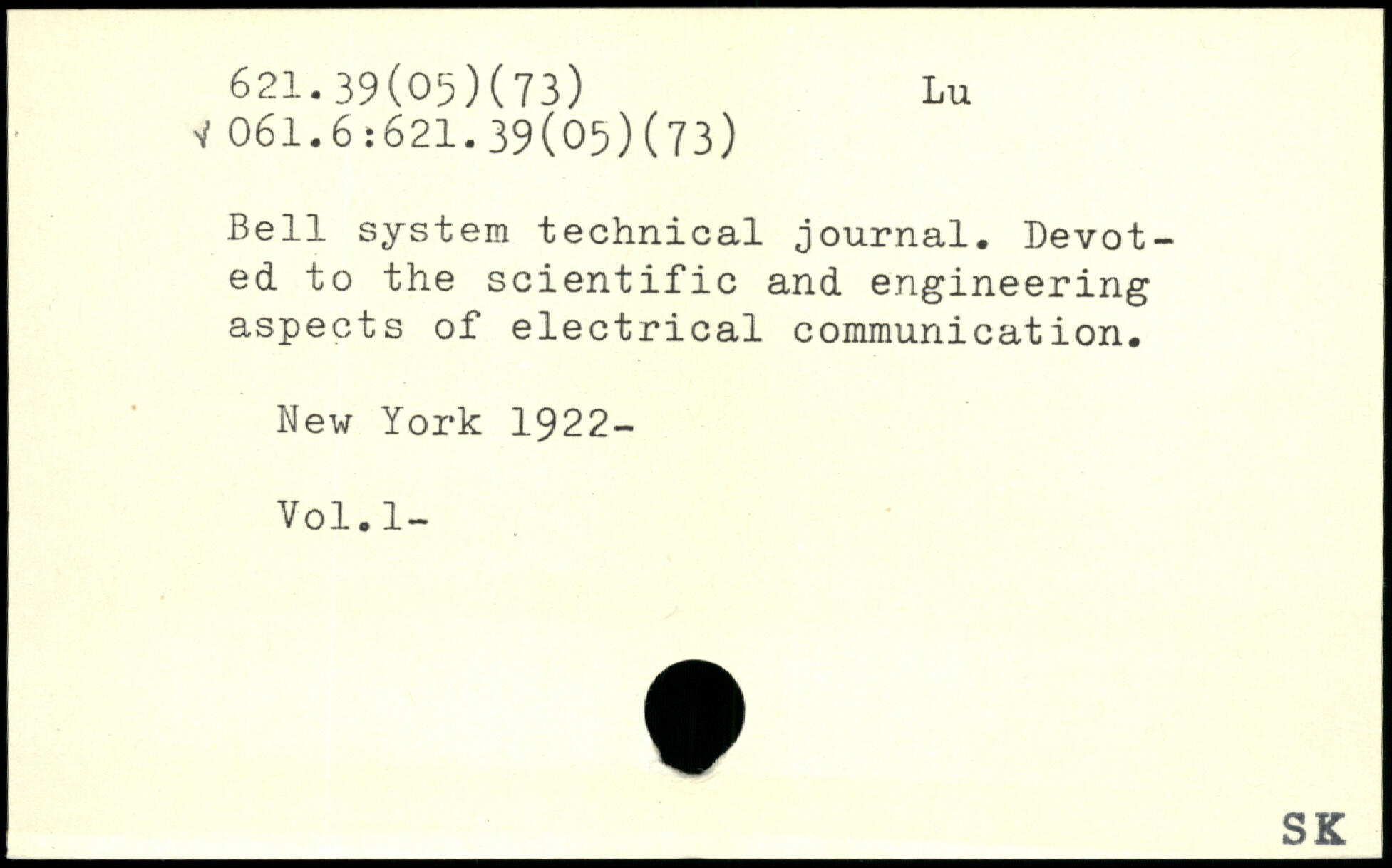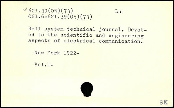 Bell system technical journal. Devoted to the scientific and engineering aspects of electrical communication.