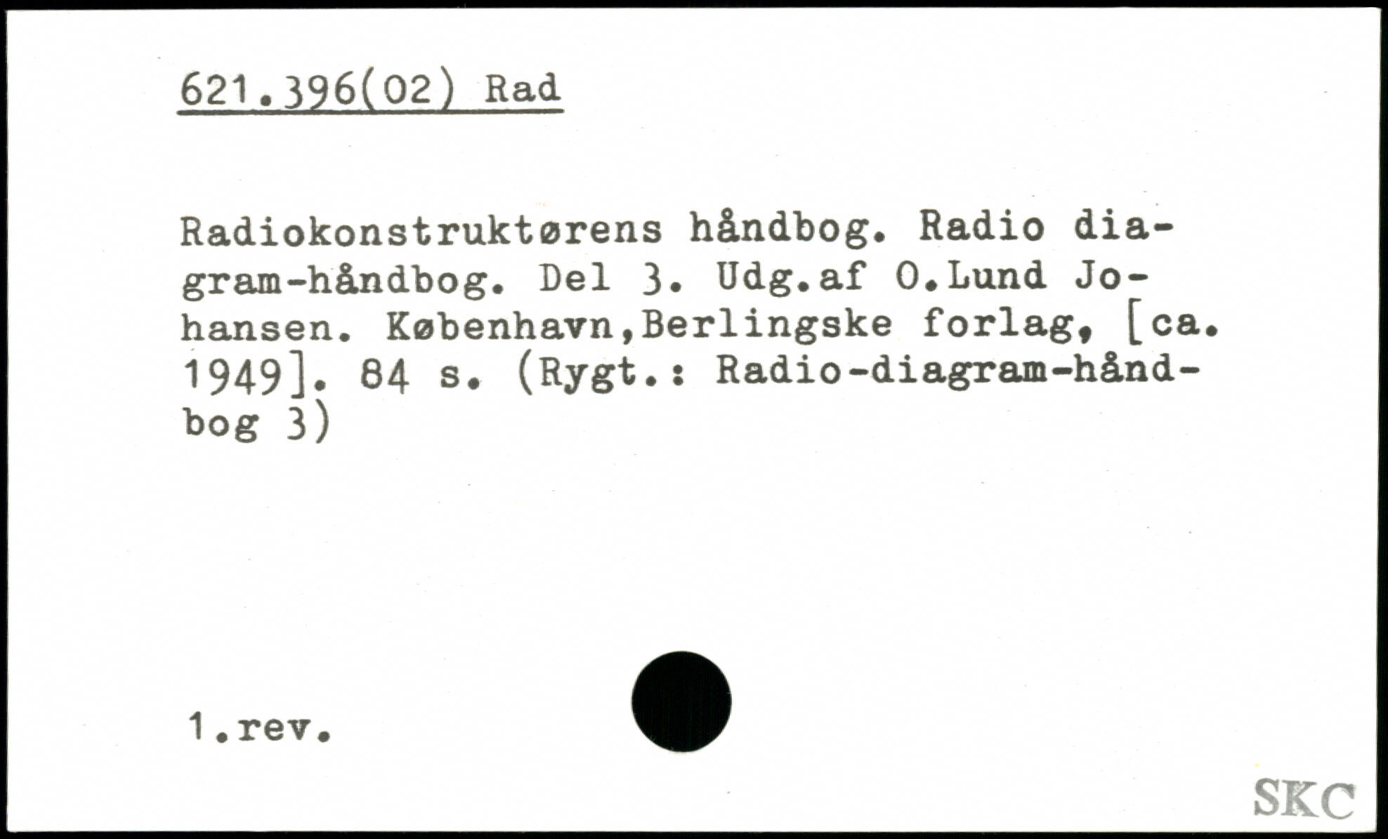 Radiokonstruktørens håndbog. Radio diagram-håndbog. Del 3. Udg.af O.Lund Johansen. København,Berlingske forlag, [ca. 1949].
