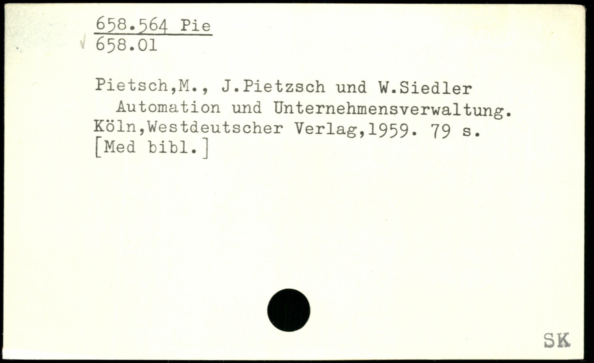 Pietsch,M., J.Pietzsch und V.Siedler Automation und Unternehmensverwaltung.