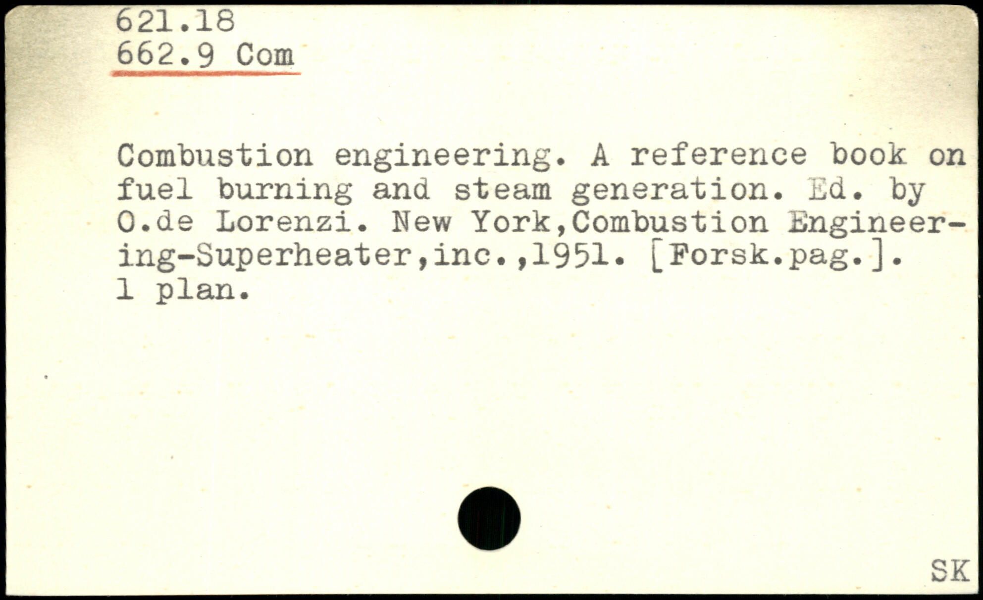 Combustion engineering. A reference book on fuel burning and steam generation. Ed. by O.de Lorenzi. New York,Combustion Engineering-Superheater ,inc.,1951, [Eorsk.pag.]. 1 plan.