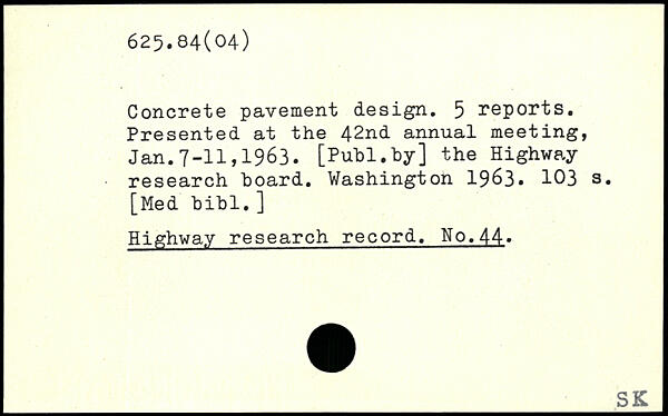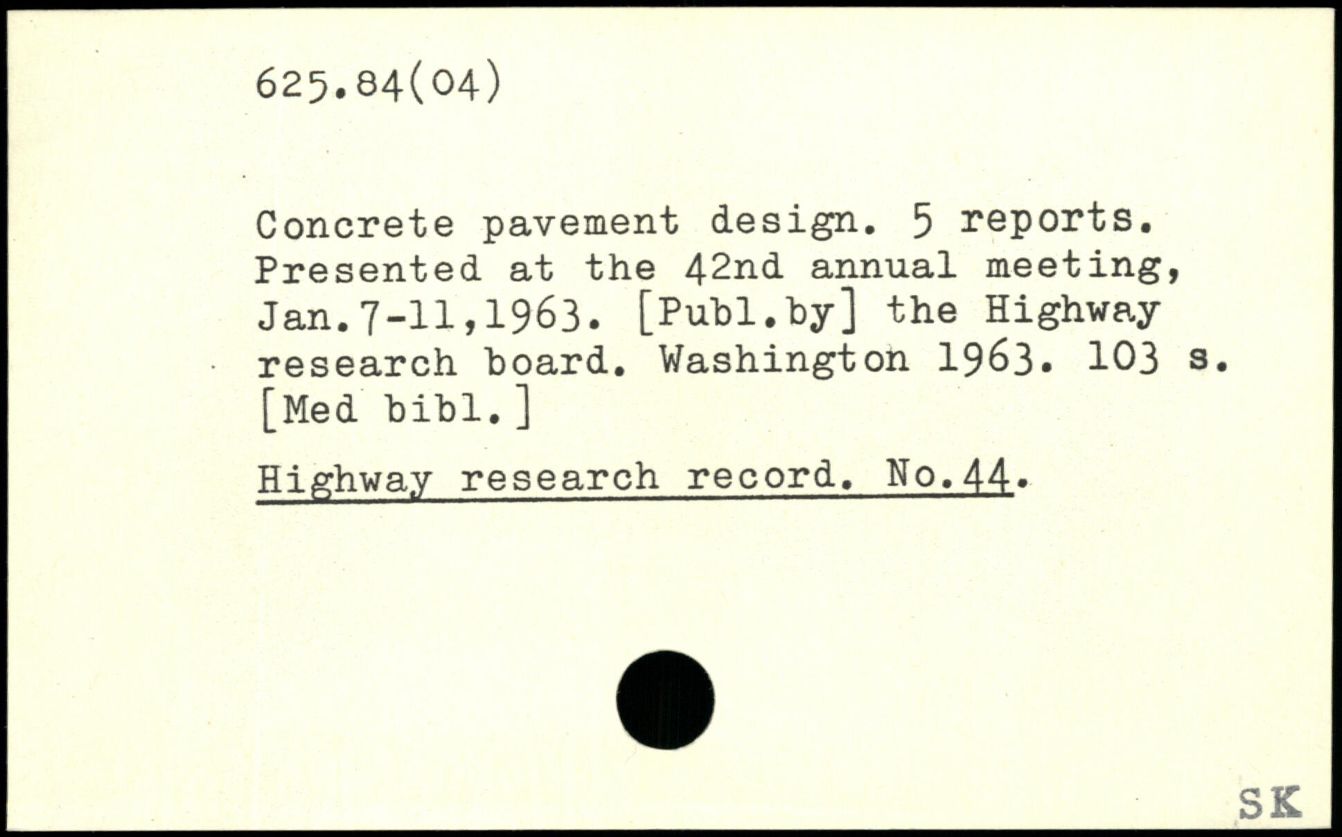 Concrete pavement design. 5 reports. Presented at the 42nd annual meeting, \ Jan.7-11,1963. [Publ,by] the Highway research board.