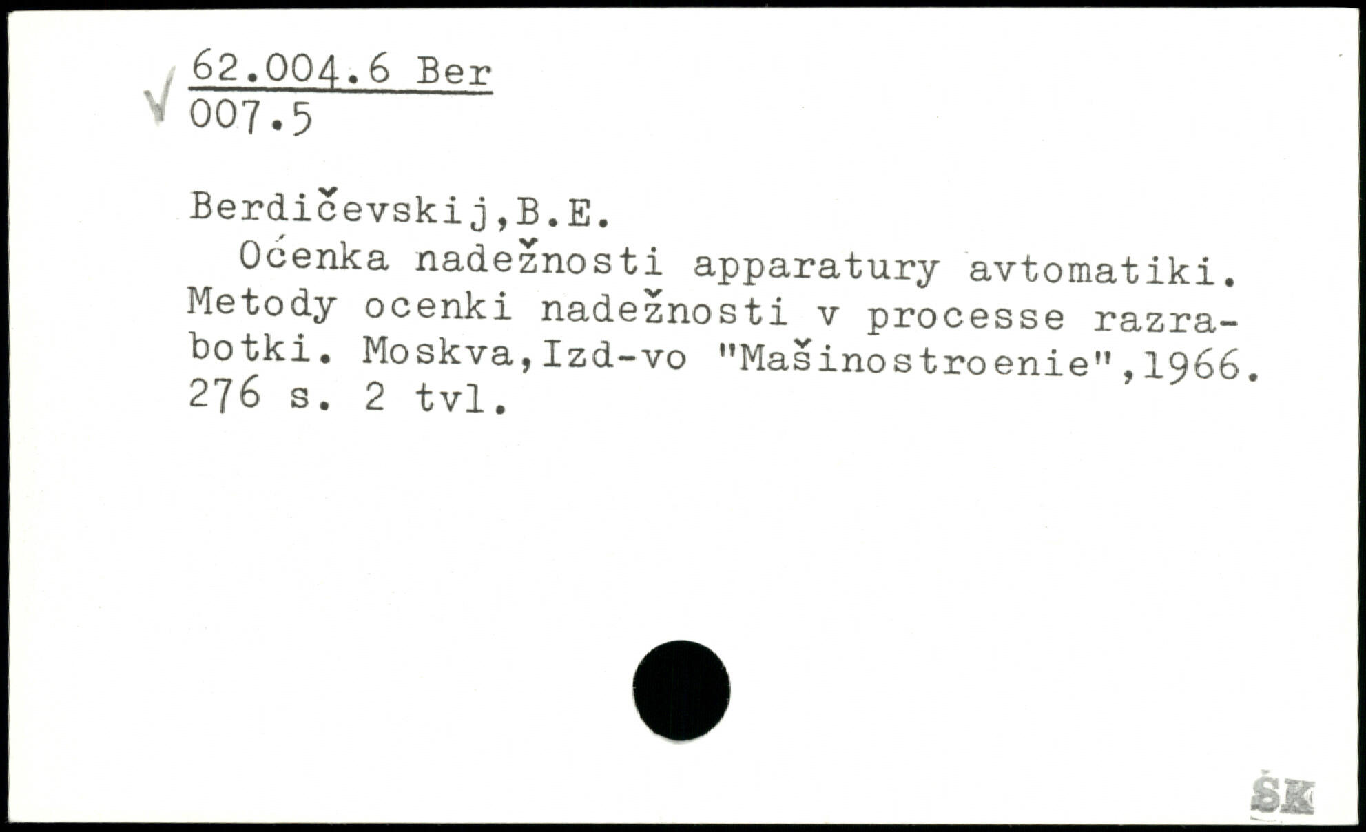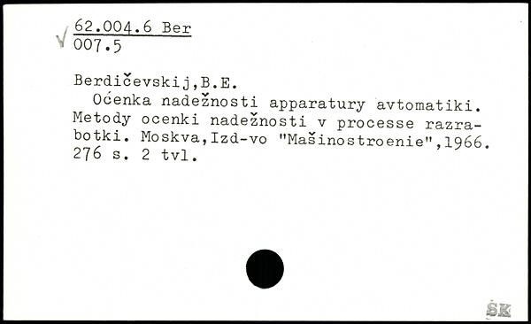 Ocenka nadeznosti apparatury avtomatiki. Metody ocenki nadeznosti v processe razra-botki. Moskva,Izd-vo "Masinostroenie",1966