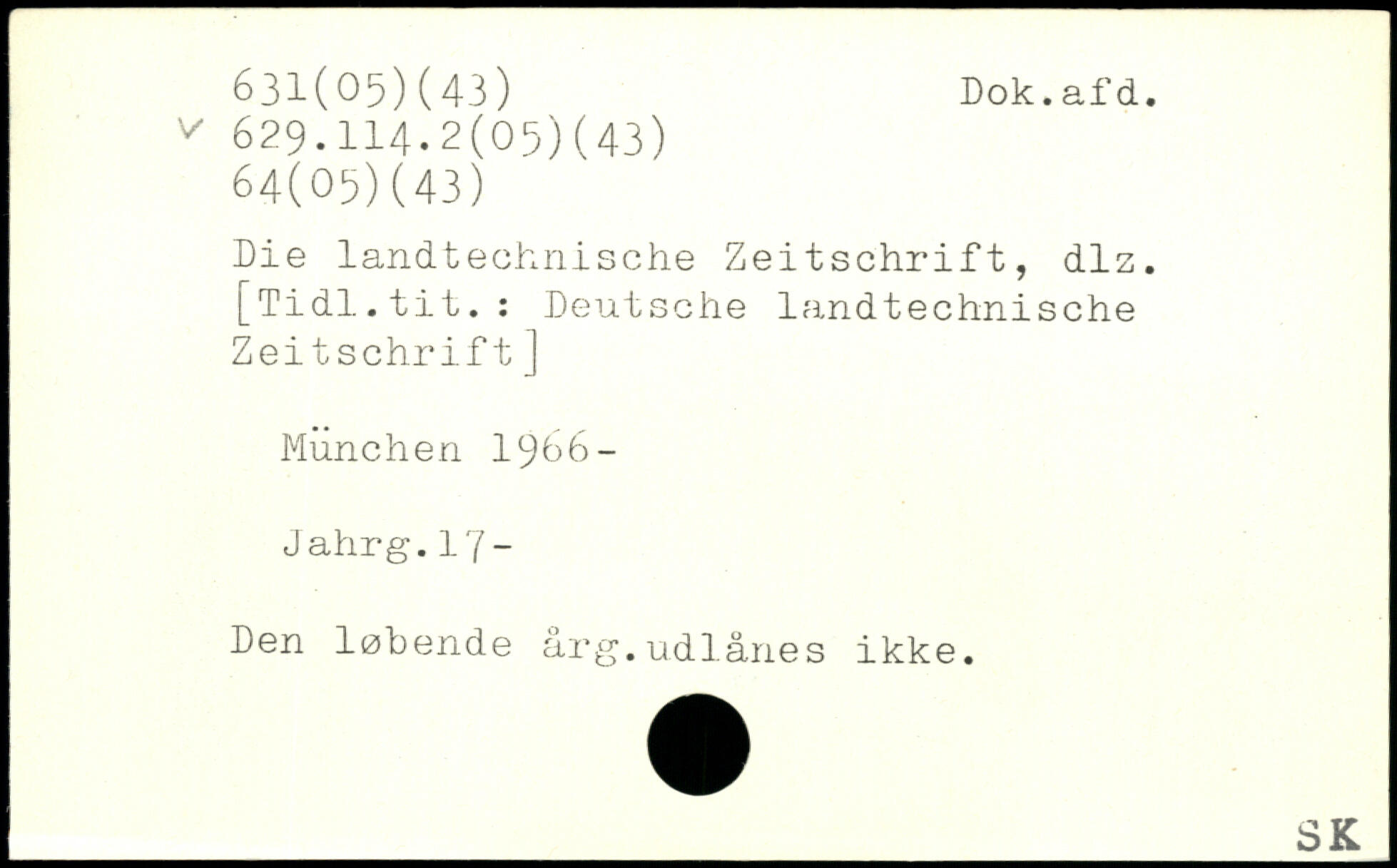 Die landtechnische Zeitschrift, dis. [Tidl.tit.: Deutsche landtechnische Zeitschrift J