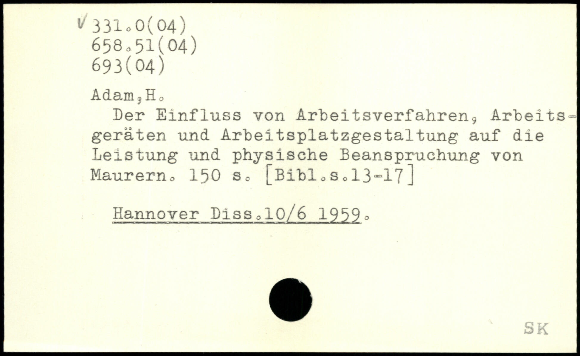Adam3Ho Her Einfluss von Arbeitsverfahren, Arbeits= geraten und Arbeitsplatzgestaltung auf die Leistung und physische Beanspruchung von Maurerno