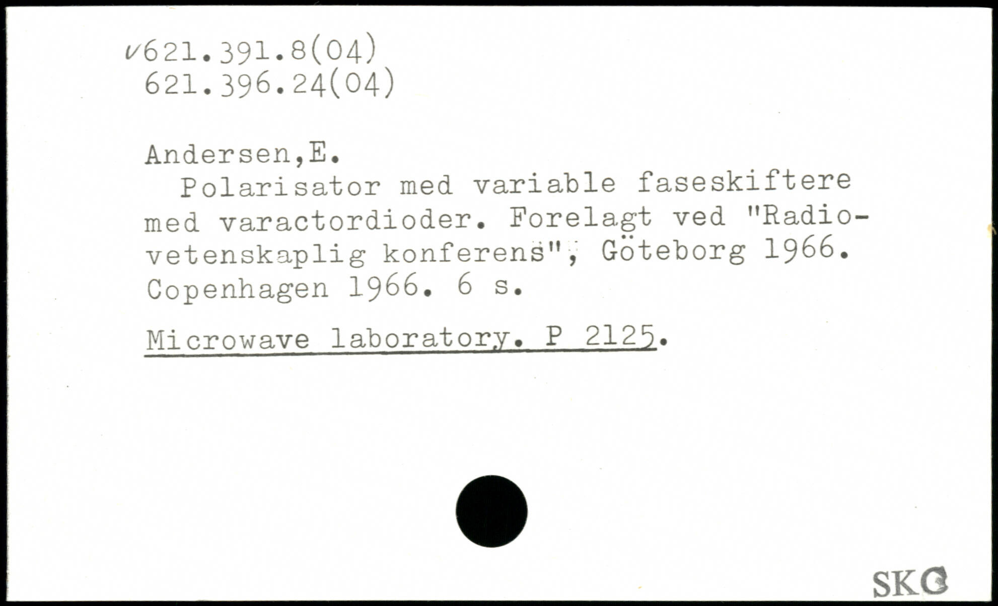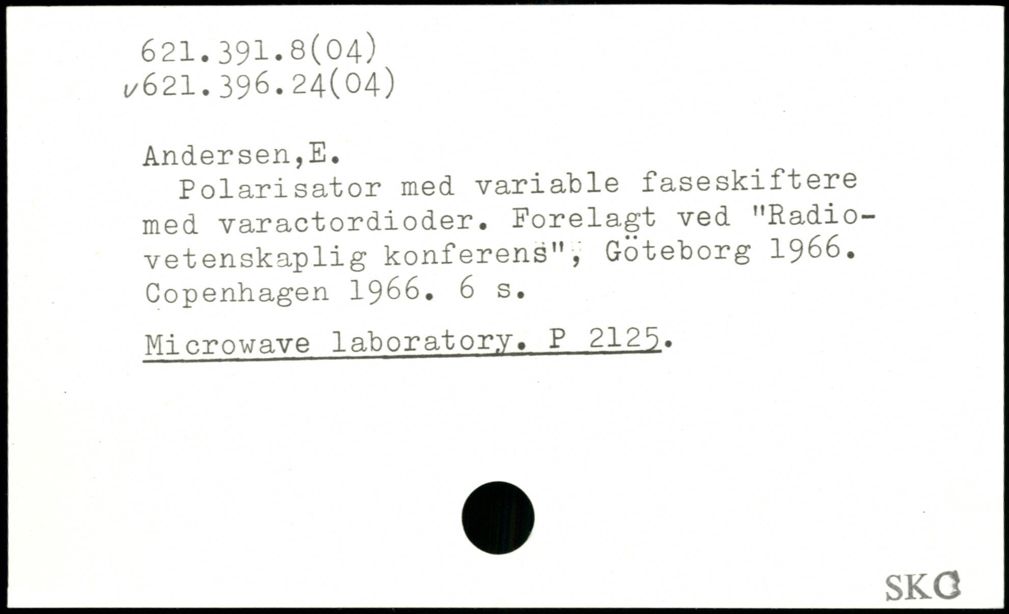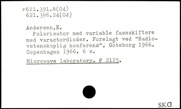 Polarisator med variable faseskiftere med varactordioder. Förelagt ved "Radiovetenskaplig konferens", Göteborg 1966.