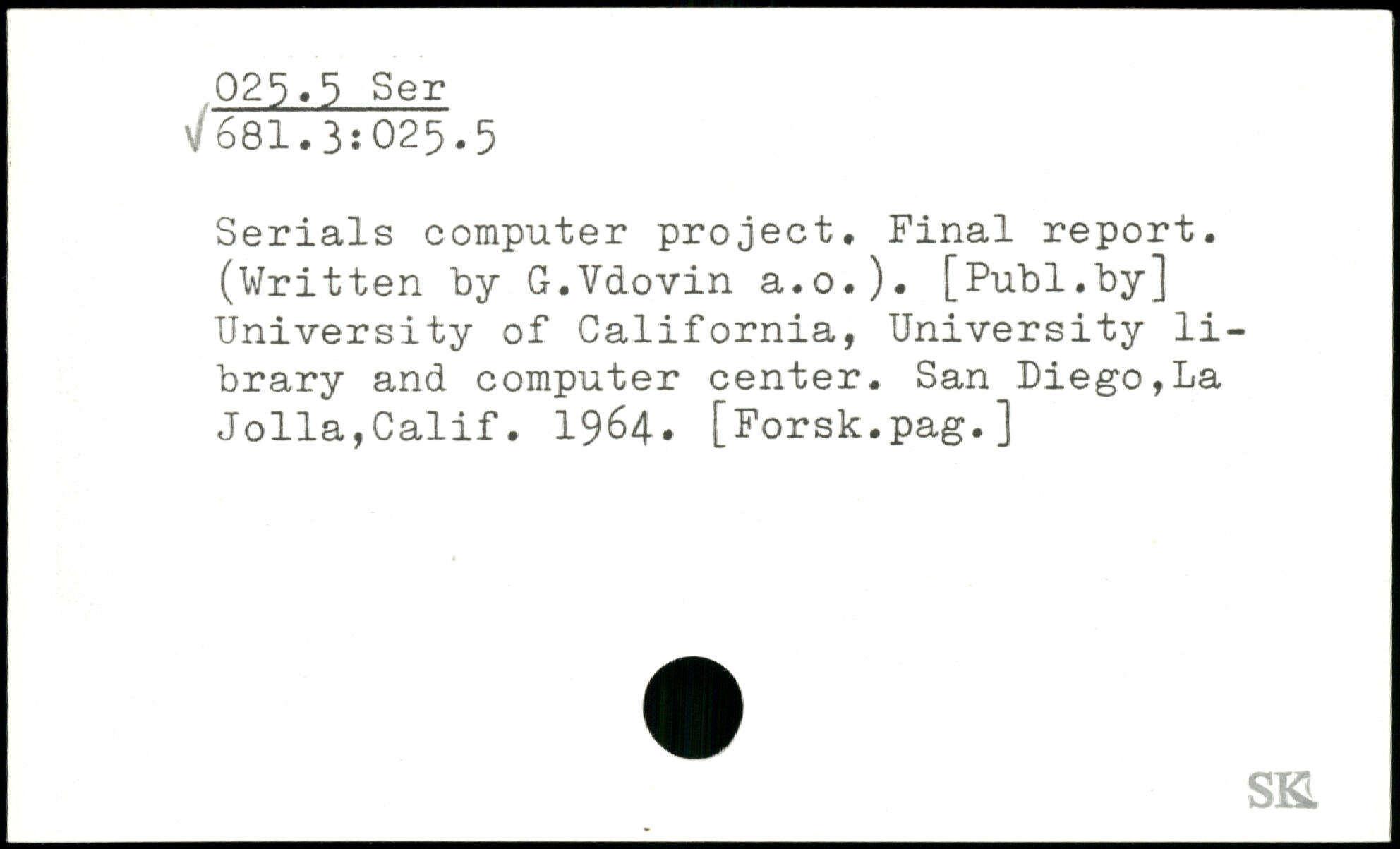 Serials computer project. Final report. (Written by G.Vdovin a.o.).
