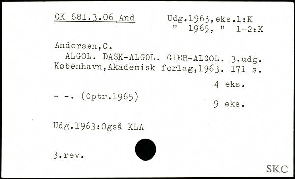 " 1965, " 1-2:K Andersen,C. ALGOL. LASK-ALGOL. GIER-ALGOL.