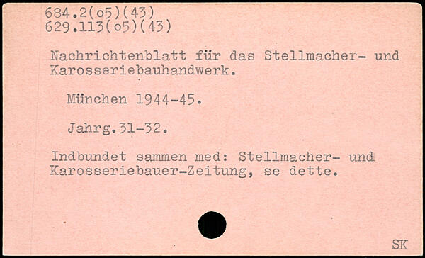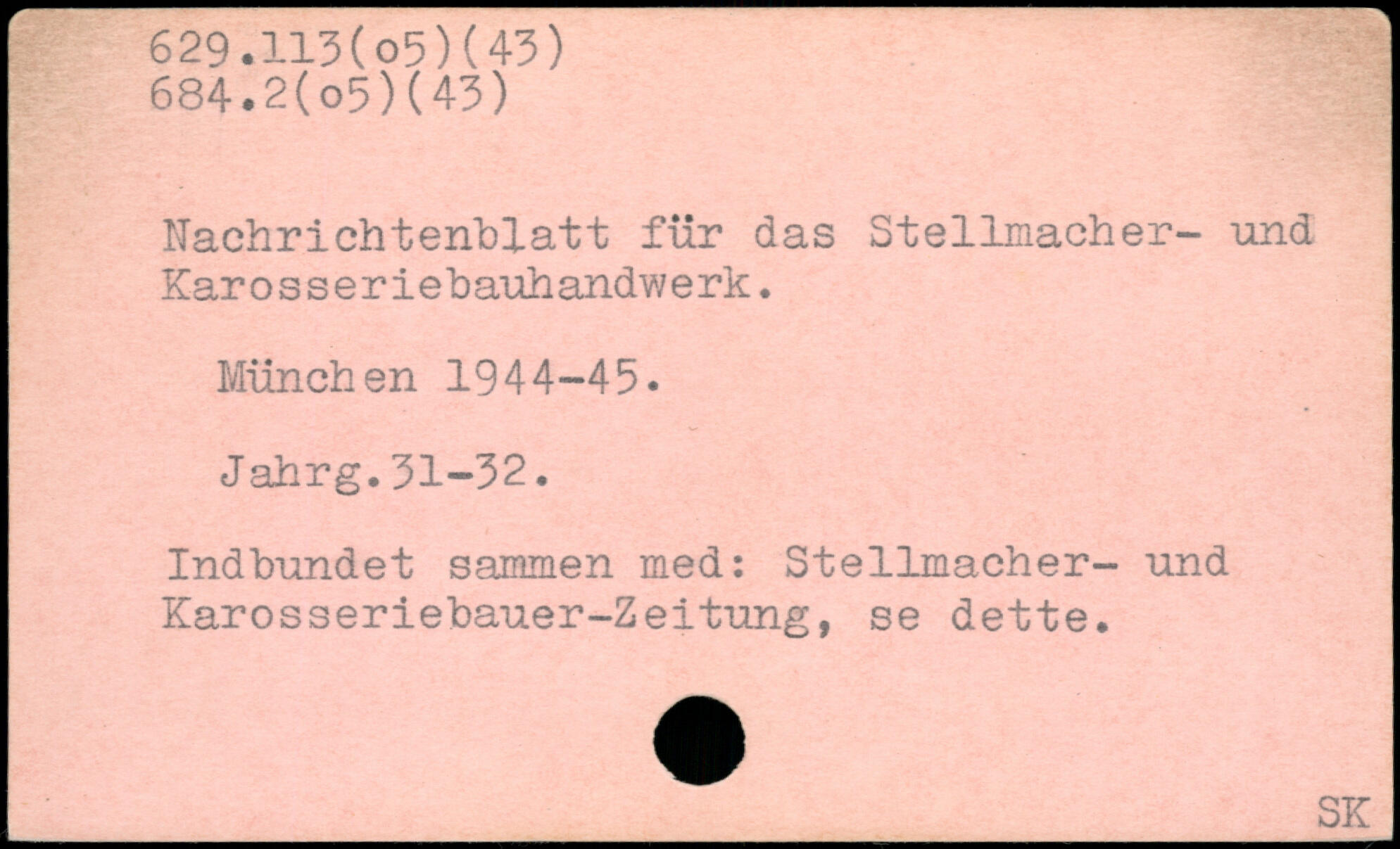 Nachrichtenblatt für das Stellmacher- und Karosseriebauhandwerk.