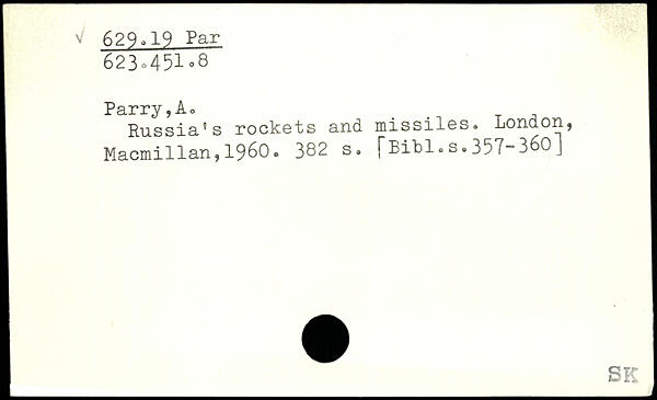 Russia’s rockets and missiles. London, J Macmillan,1960.