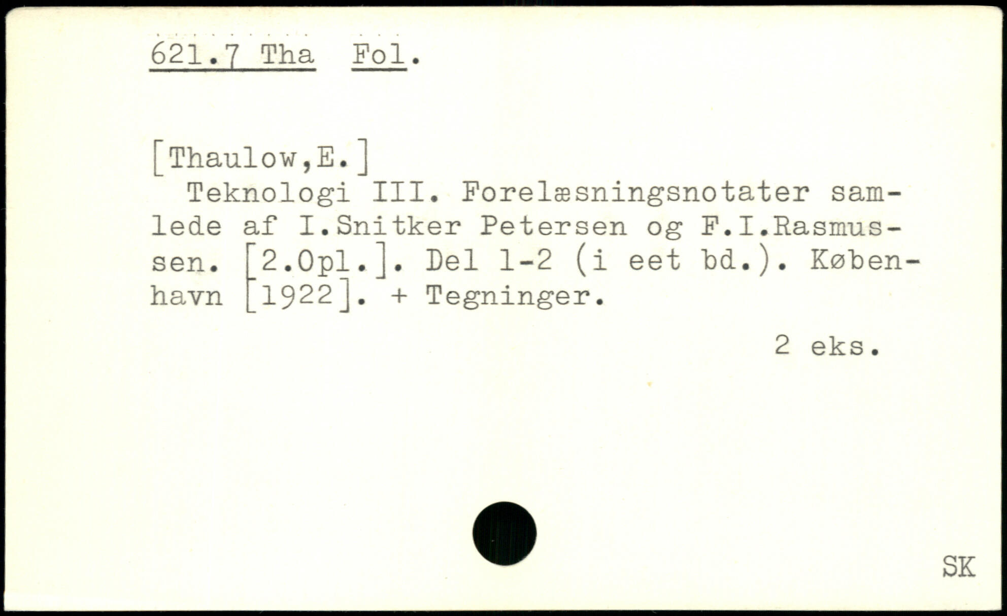 Teknologi III. Forelæsningsnotater samlede af I.Snitker Petersen og F.I.Rasmussen. 2.0pl.]. Del 1-2 (i eet bd.).