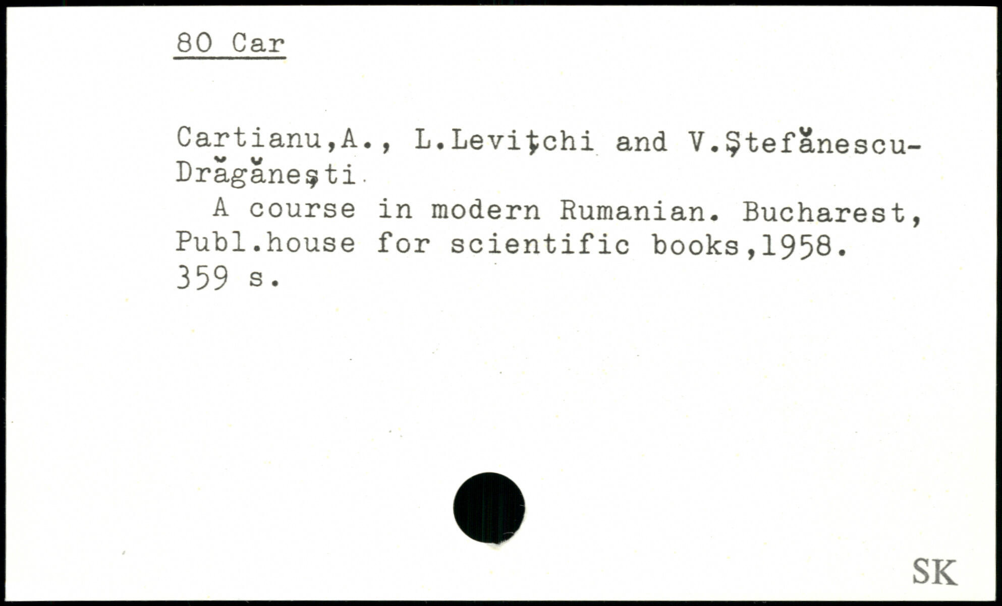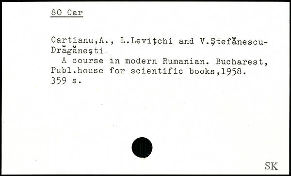 Cartianu,A., L.Levi^chi and V.§tefanescu-Dragane^ti. A course in modern Rumanian. Bucharest, Publ.house for scientific books,1958.