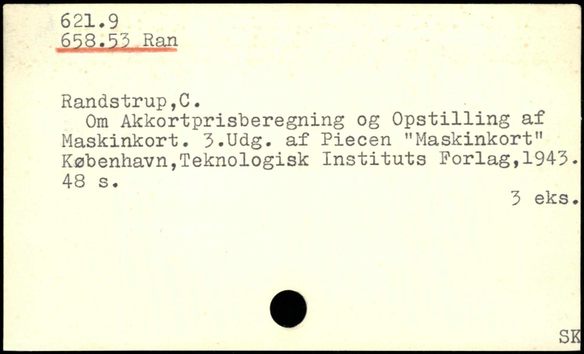 Om Akkortprisberegning og Opst1111ng af Maskinkort. 3.Udg. af Piecen "Maskinkort"