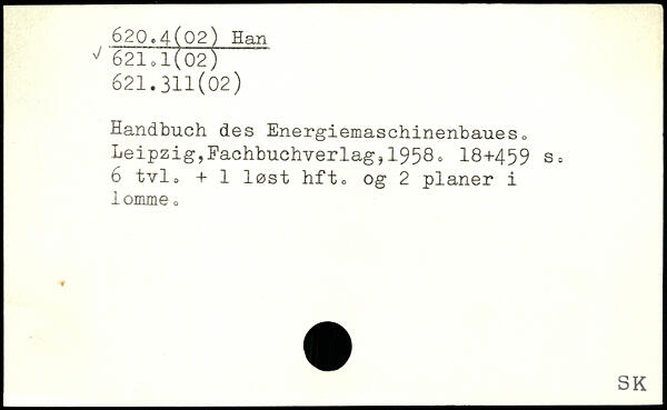 Handbuch des Energiemaschinenbaueso Leipzig,Pachbuchverlag,19580 18+459 sc 6 tvlo + 1 lest hft, og 2 planer i lomme