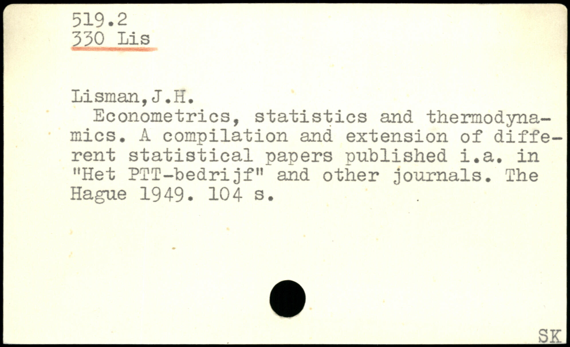 Econometrics, statistics and thermodynamics. A compilation and extension of different statistical papers published i.a. in "Het PTT-bedrijfn and other journals.