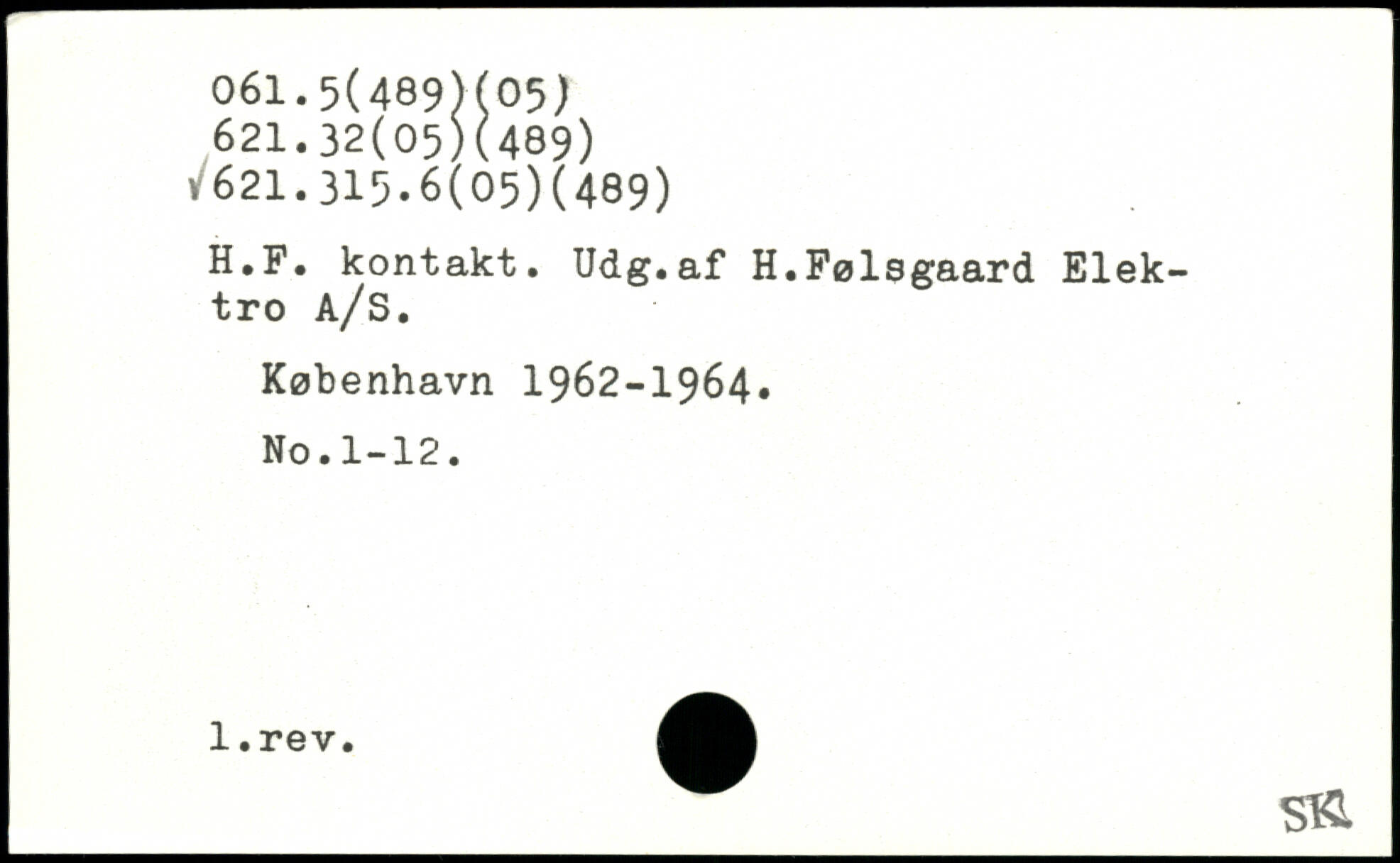 H.F. kontakt. Udg.af H.Følsgaard Elektro a/s.