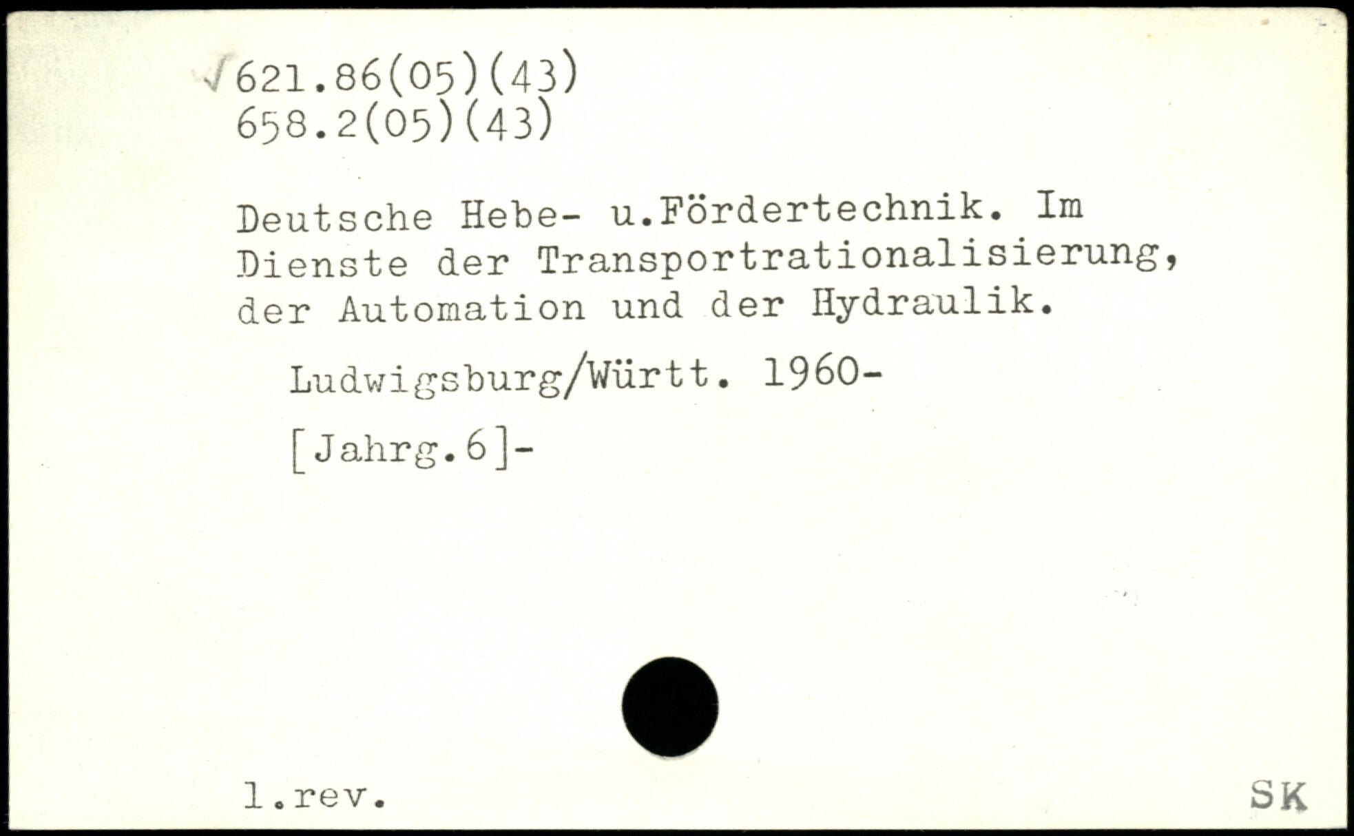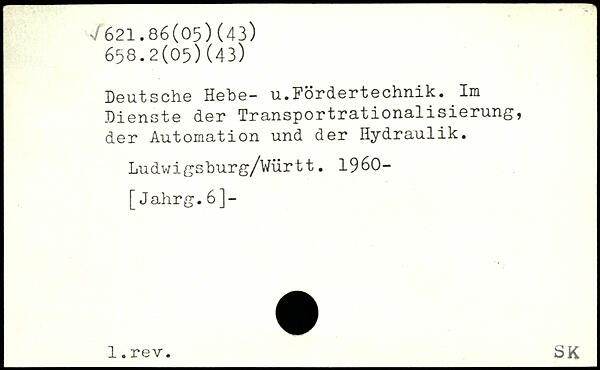 Deutsche Hehe- u.Fordertechnik. Im Menste der Transportrationalisierung, der Automation und der Hydraulik. Ludwigsburg/Vurtt. 1960-