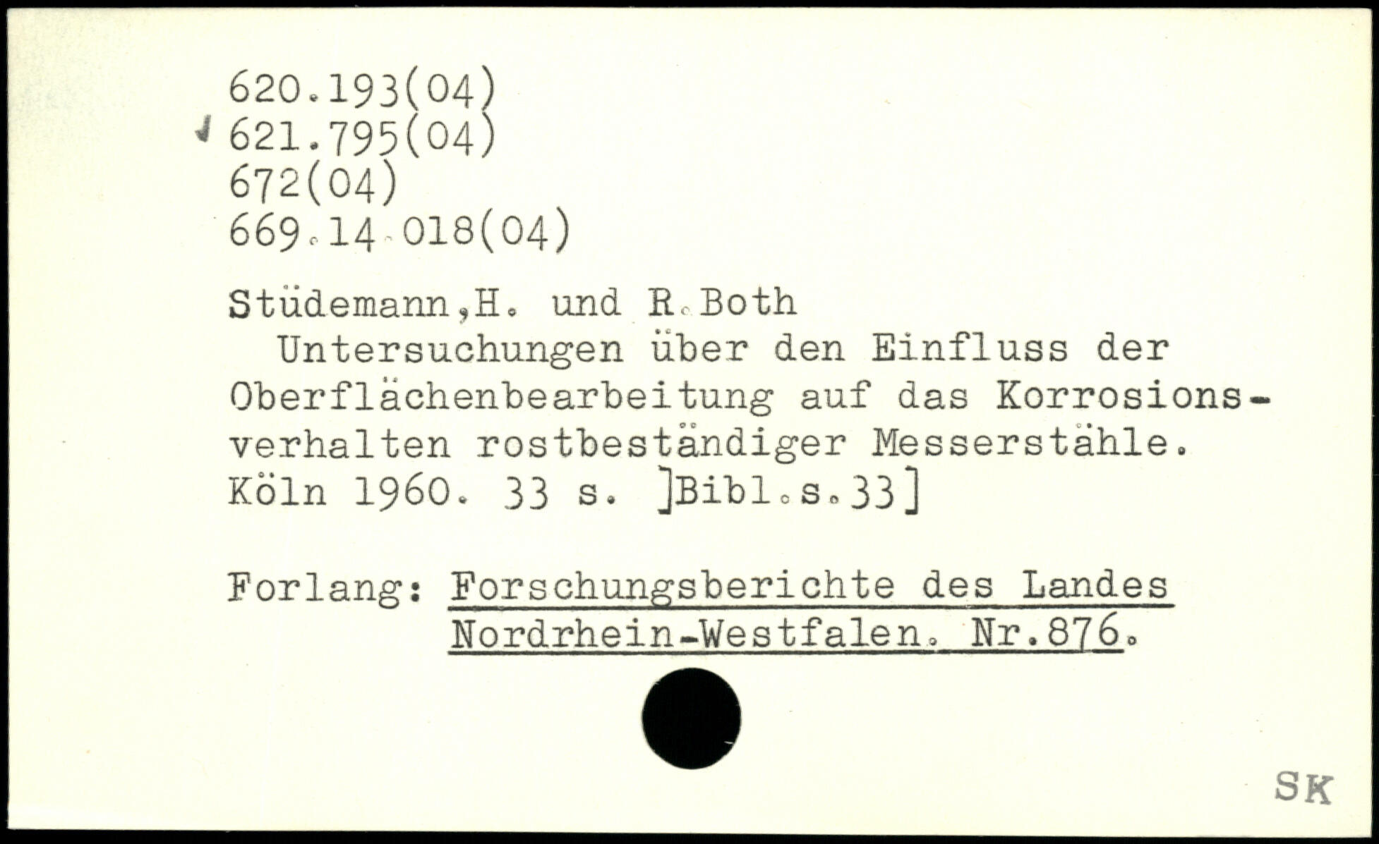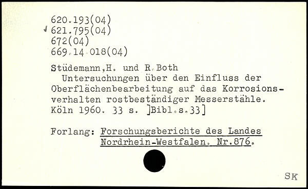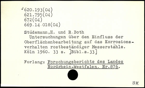 Stüdemann,H. und R<Both Untersuchungen über den Einfluss der Oberflächenbearbeitung auf das Korrosions-verhalten rostbeständiger Messerstähle.