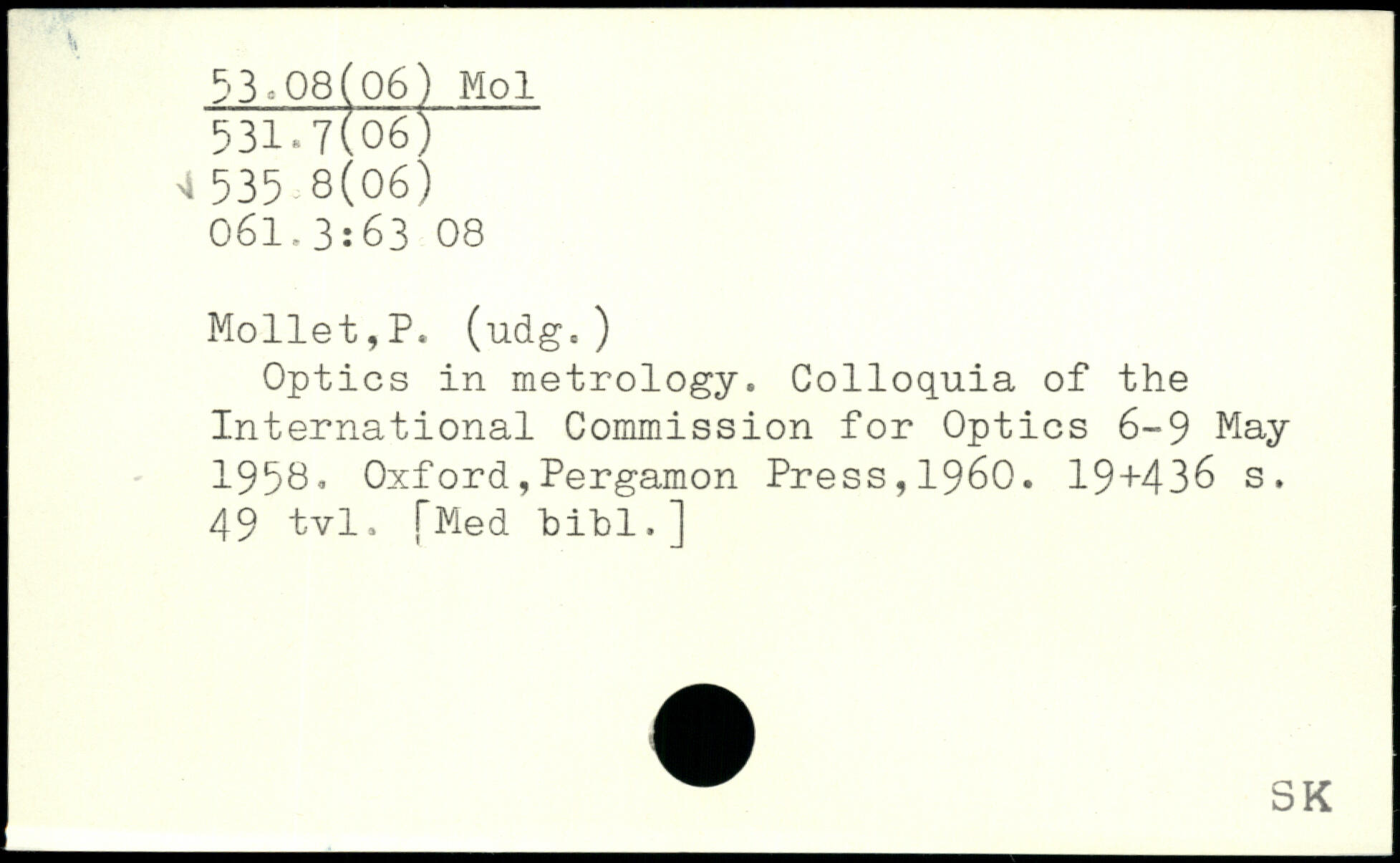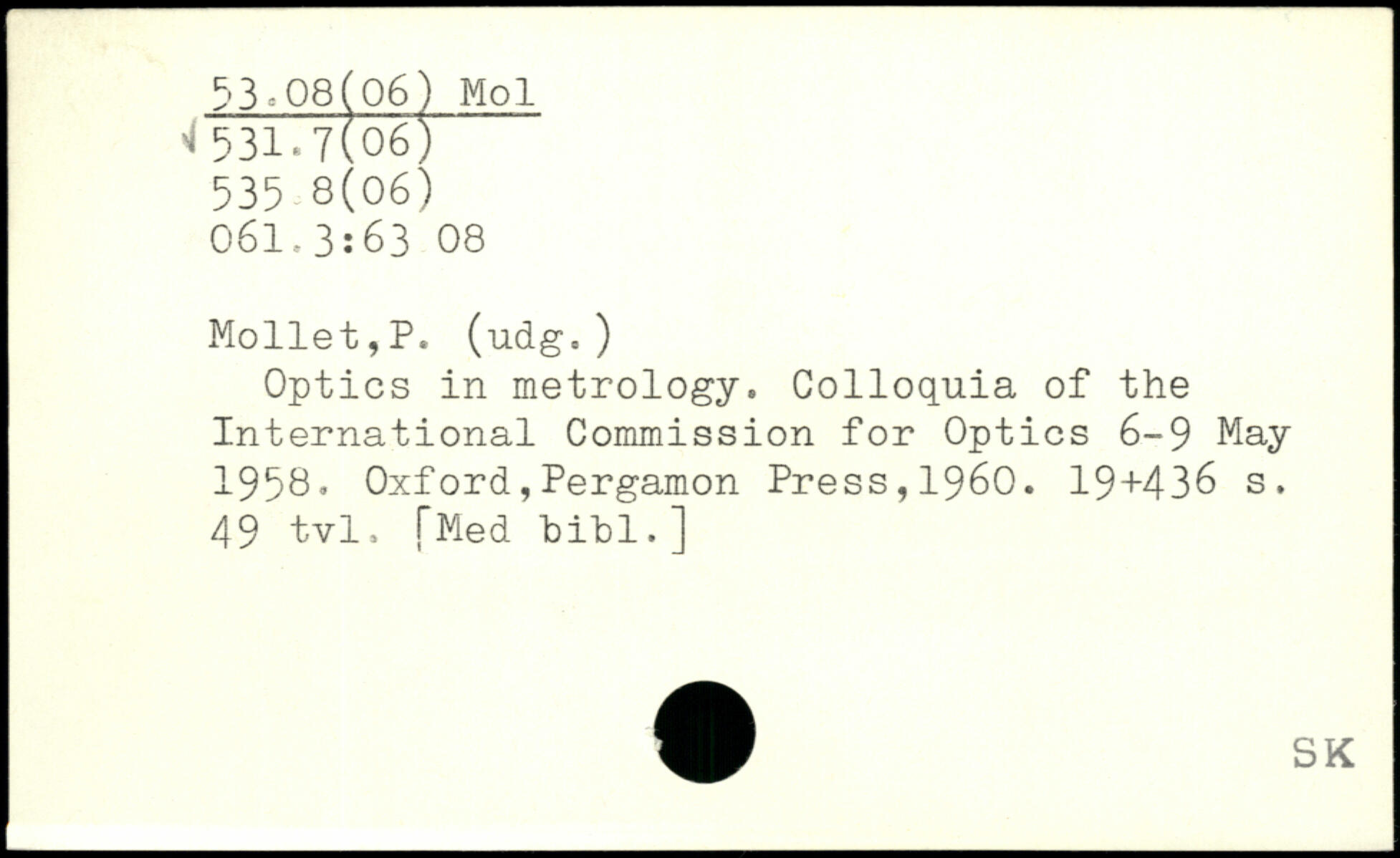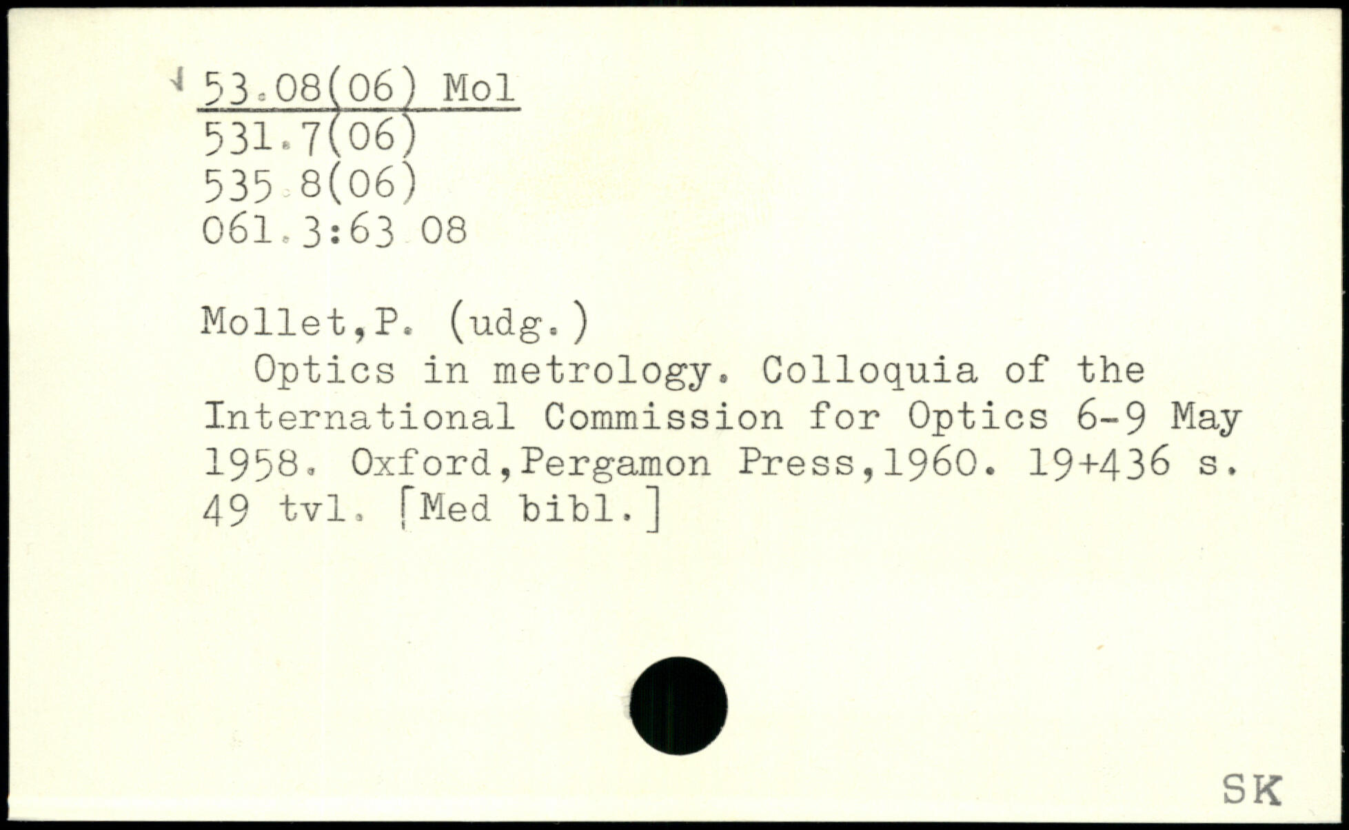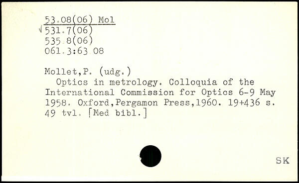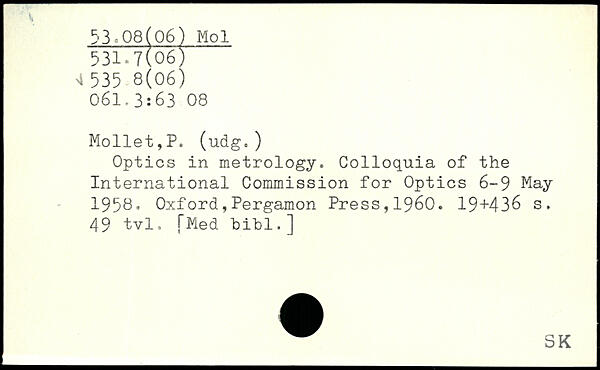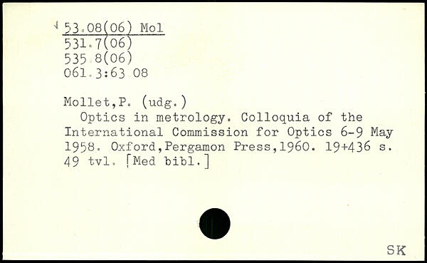 Optics in metrology. Colloquia of the International Commission for Optics 6-9 May 1958.