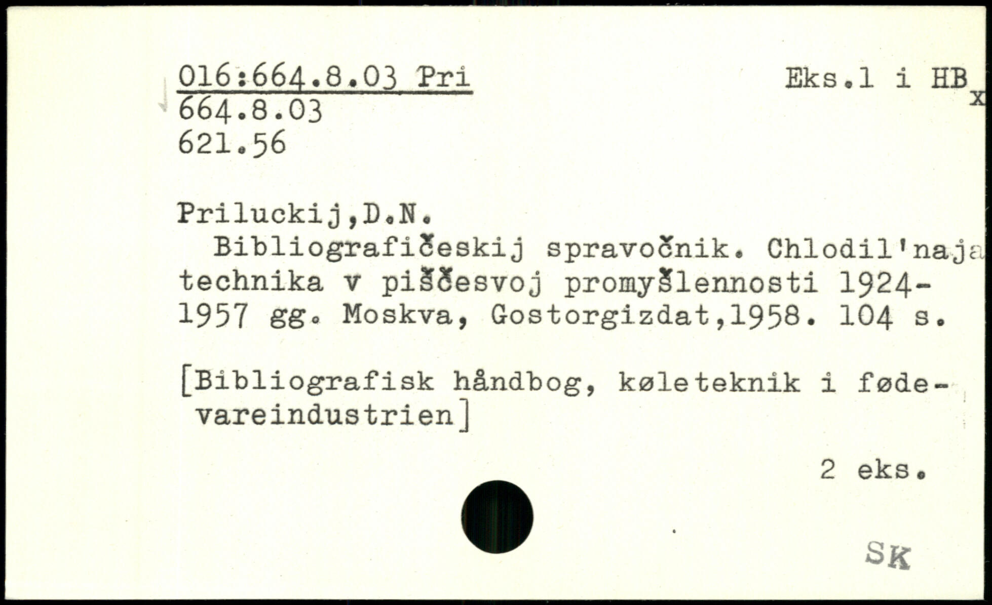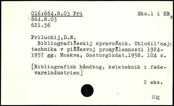 BibliografiJeskij spravoSnik. Chlodil'naja technika v piSSesvoj promyålennosti 1924-1957 gg.